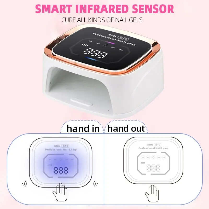 3.Use the appropriate timer (30s/60s/90s/120s low heat mode) depending on the requirements of your gel polish. (The UV nail lamp works automatically when you place your hand in the nail lamp. If you have selected a timer, the nail lamp will automatically stop working when the timer ends)