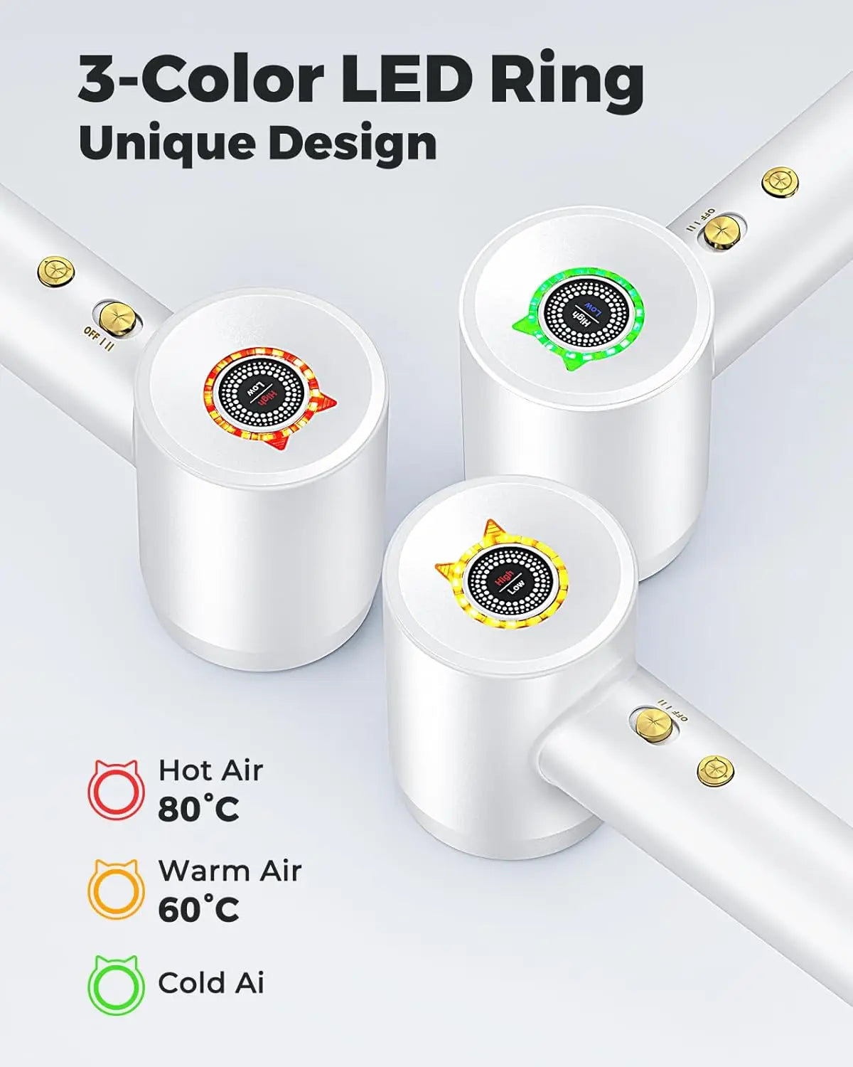 4. ๐๐ง๐ญ๐๐ฅ๐ฅ๐ข๐ ๐๐ง๐ญ ๐๐๐ฆ๐ฉ๐๐ซ๐๐ญ๐ฎ๐ซ๐ ๐๐จ๐ง๐ญ๐ซ๐จ๐ฅ: Bopcal professional hairdryer measures the air temperature over 100 times per second and regulates the heat through a high performance chip control system. Avoid overheating damage to your hair and protect your hair. This 1500 Watt Bopcal hair dryer has 3 different LED lights built in, and you can turn the LEDs into different colors by switching the heat button. Red means hot air, yellow is warm air and green is cool air. Enjoy blow-drying your hair in comfort
