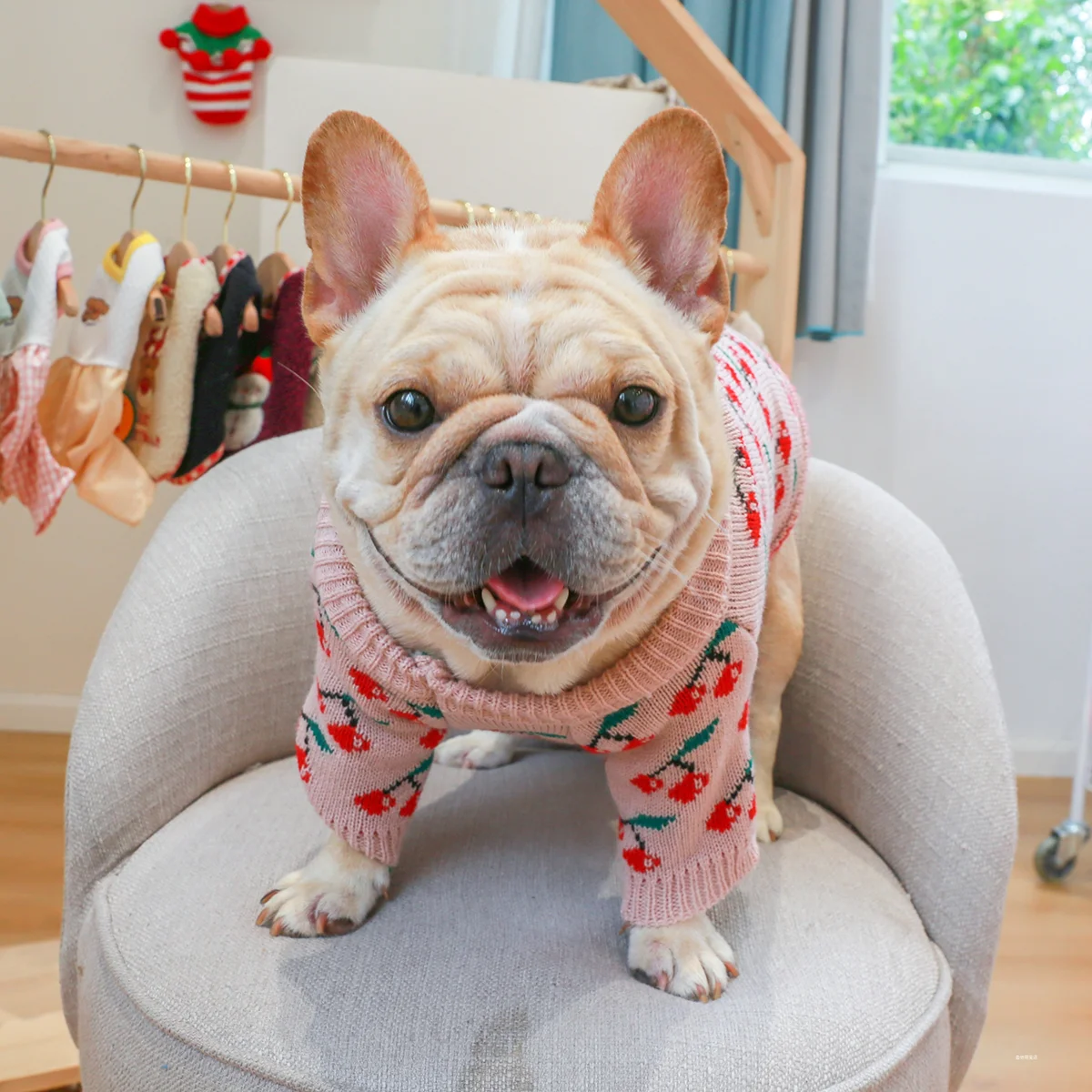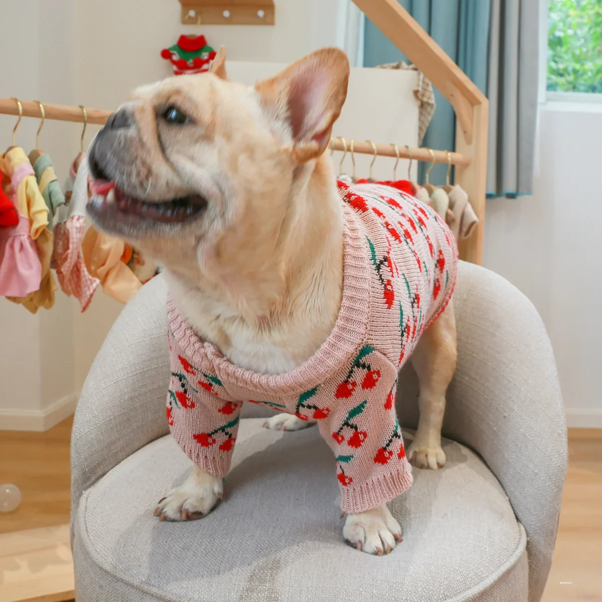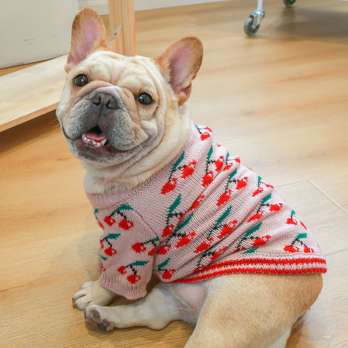 1PC Pet Clothes Dog Cat Thickened Warm Winter Autumn Pink Cherry Sweater Elastic Jumper Knitted Sweater