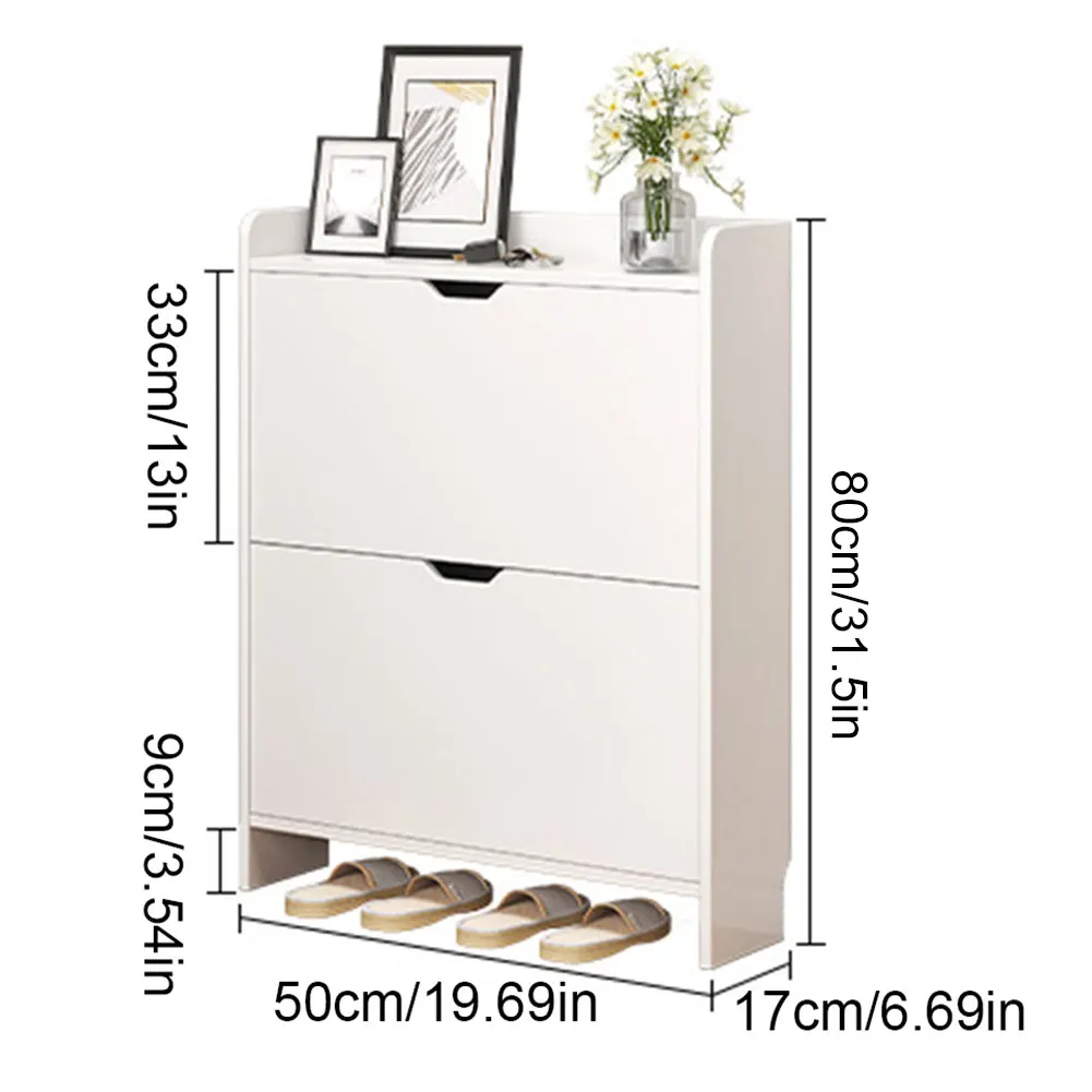 | 2-Tier Wooden Entrance Shoe Cabinet with Flip Drawers Shoe Organizer Cabinet Narrow Shoe Storage Cabinet for Bedroom Living Room Specification: Origin: Mainland China Size: 500.00x170.00x830.00mm/19.69x6.69x32.68inch Appearance Style: Modern Installation Method: Assembly Material: Wooden Note: 1*Entrance Shoe Cabinet |