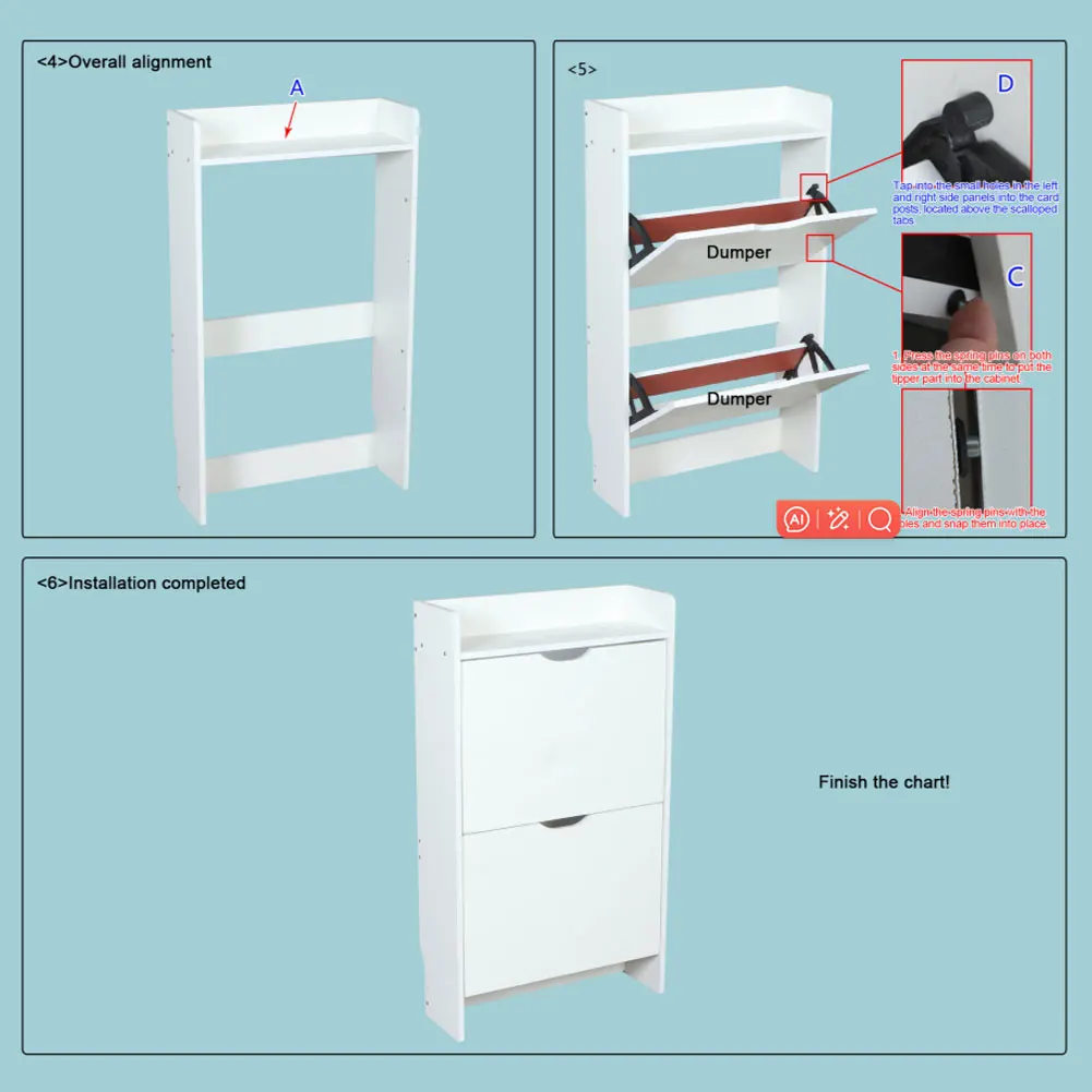 - Versatile storage adapts to high heels, sneakers, flats, and boots, with adjustable flip-drawer panels and removable dividers to customize each shoe slot.