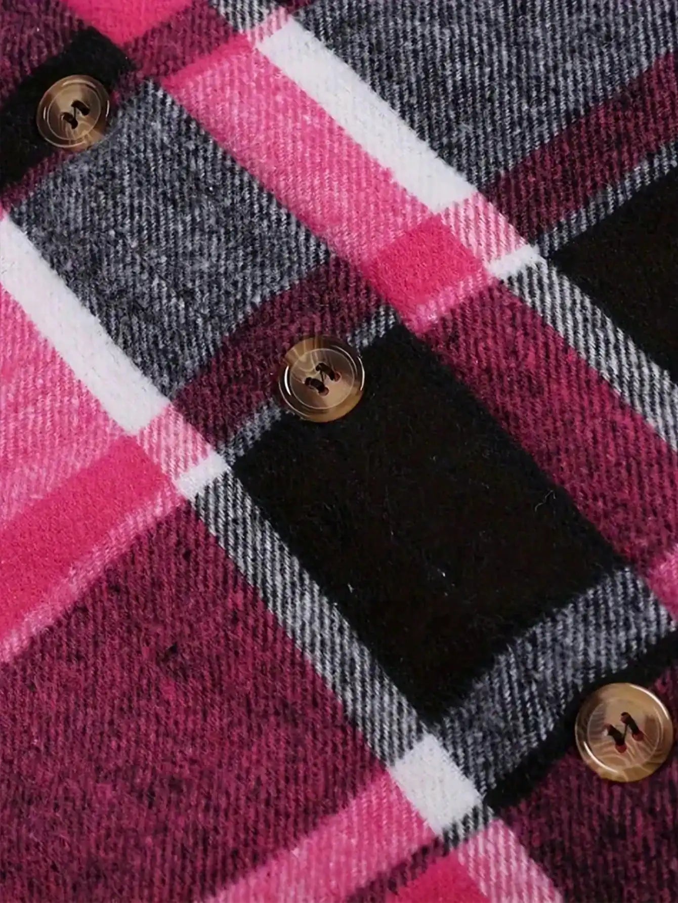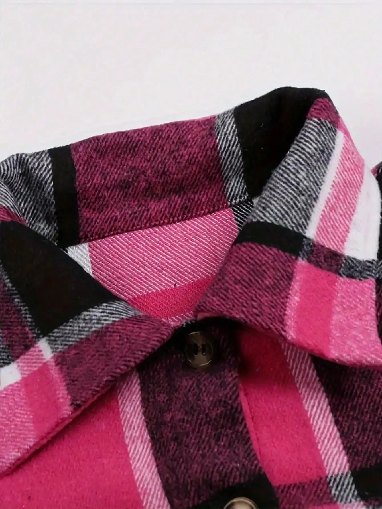 2025 Newest Women's Long Sleeve Flannel Plaid Shirt Casual Button Down Shirt Cardigan New Year and Valentine's Day Clothing