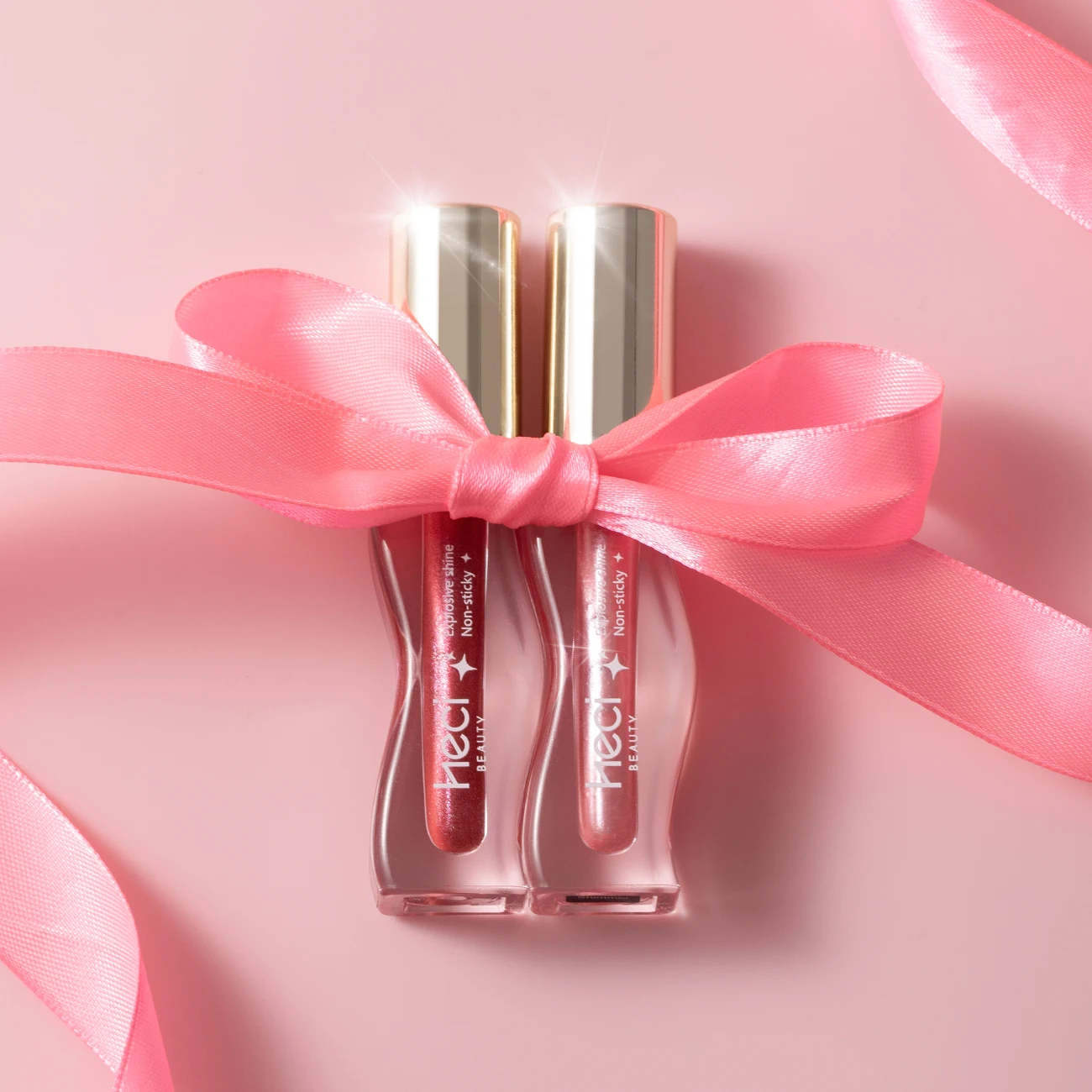 2PCS Shimmer Glossy Lip Glaze Duo- Vegan Tinted Formula, Fine Glitter, Non-Sticky High Shine Glass Lip Finish Sparkle-Nude