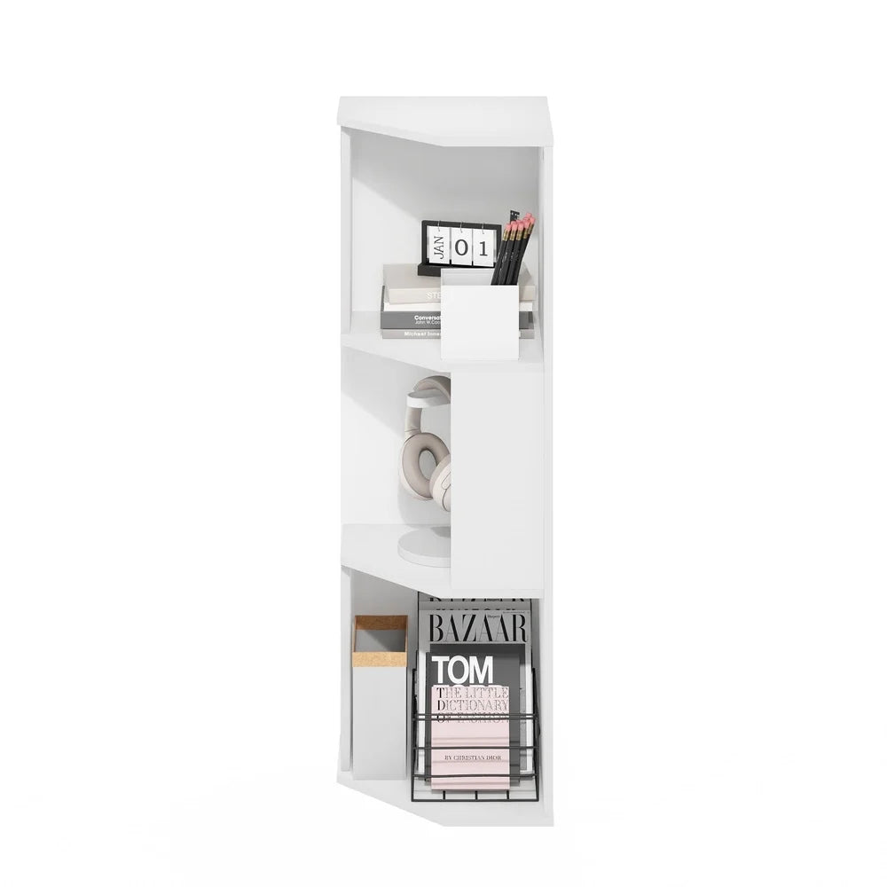 Elevate your living space with a sleek, space-saving corner bookcase that blends modern design with practical shelving.