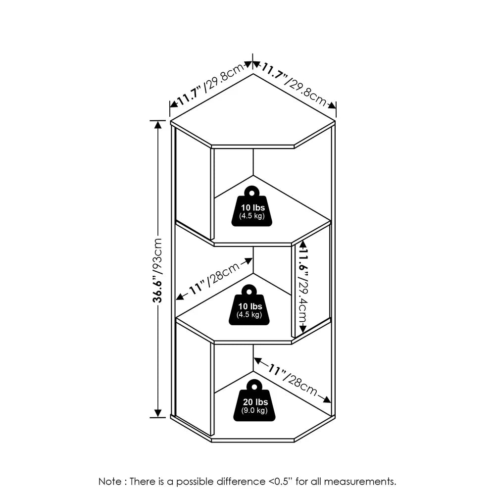 - Corner bookcase that fits tight spaces: measures 11.73 in square footprint and 36.61 in tall, tucking neatly into unused corners in your living room, bedroom, or office.