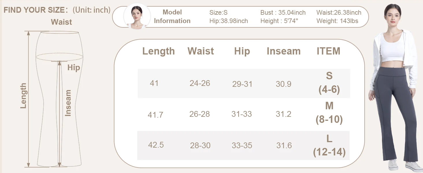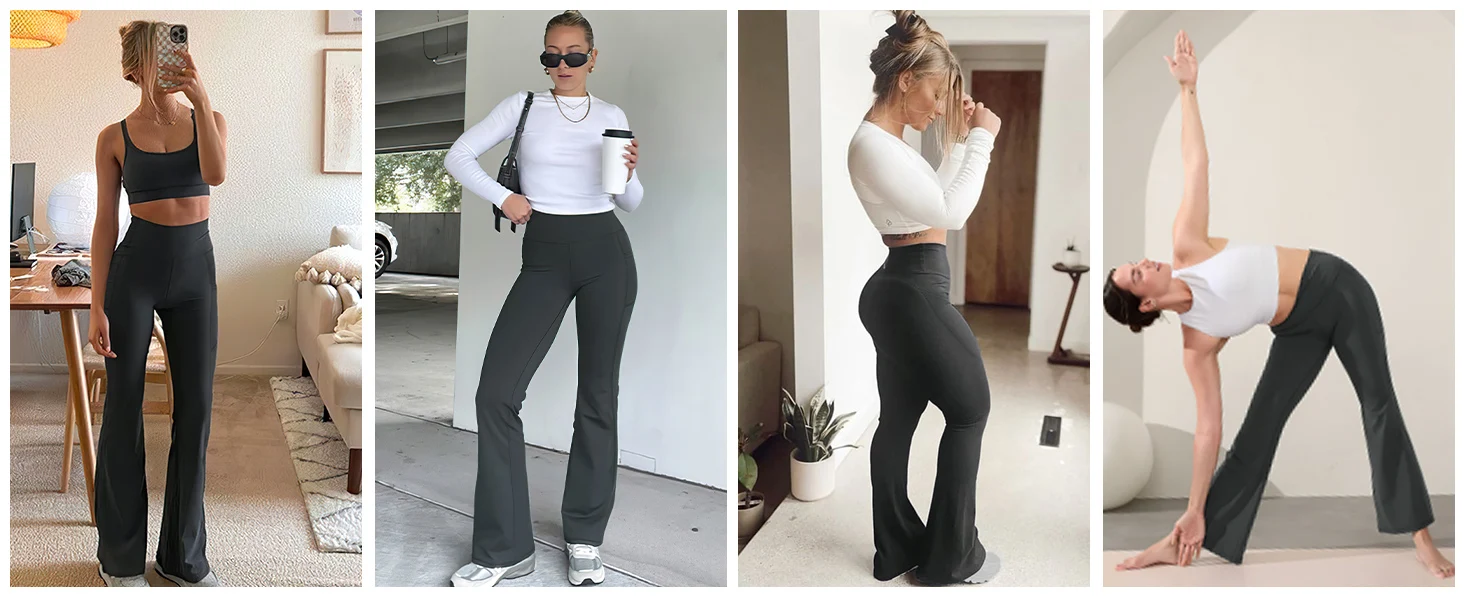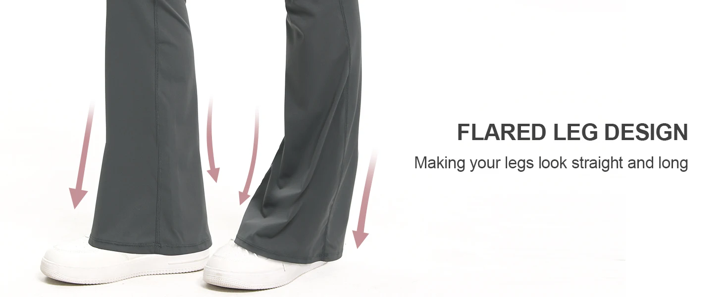 The flared yoga trousers are designed to be both functional and fashionable, easy to match with any tops such as shirts, t-shirts, sweatshirts and so on. Perfect for fitness, yoga, working out, lounging, going out, dancing, shopping, night out, hitting the streets, running, tennis, hiking, walking, partying or Casual Attire