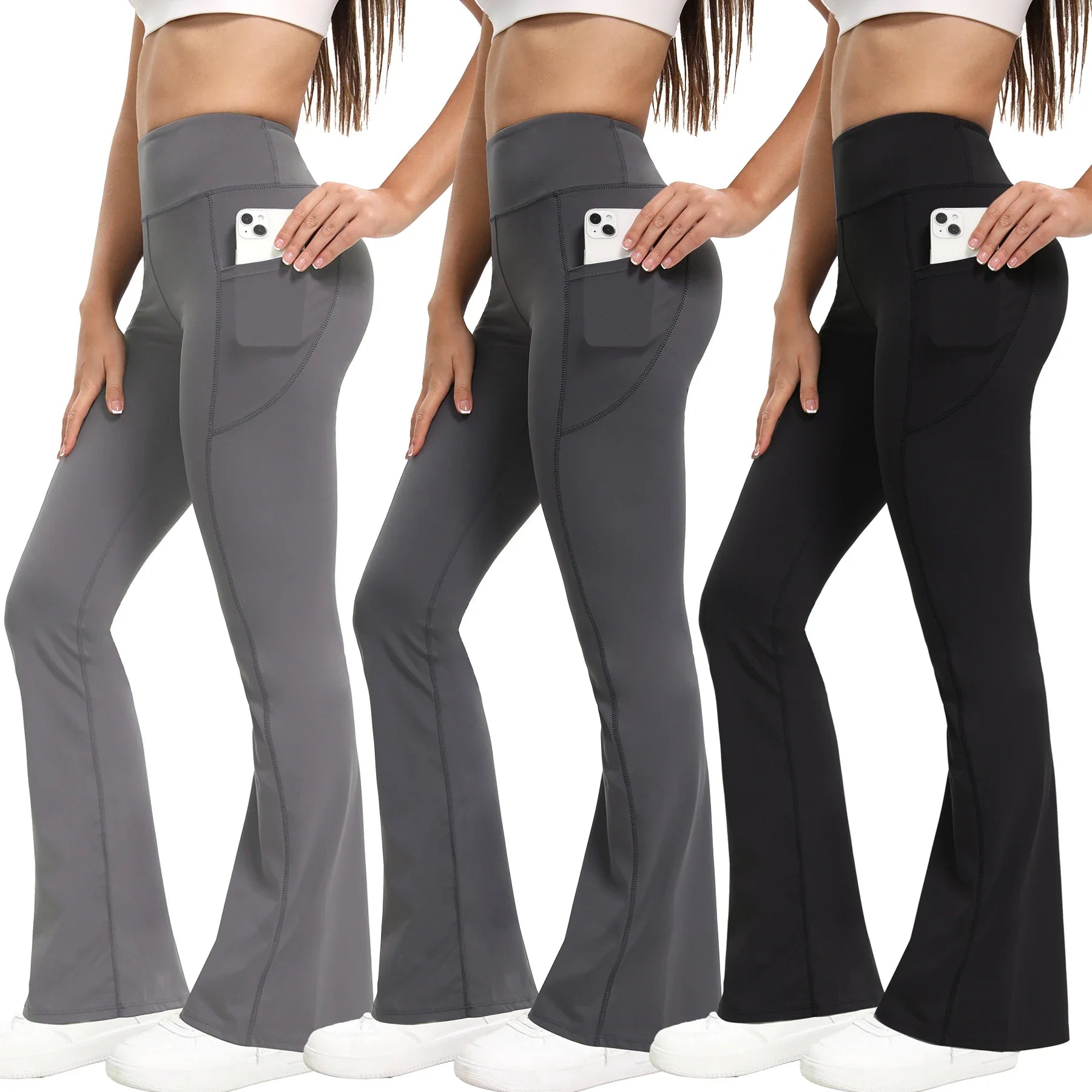 3 Pack Bootcut Yoga Pants with Pockets for Women Flared Leggings High Waist Womens Trousers Tummy Control 2 Pockets