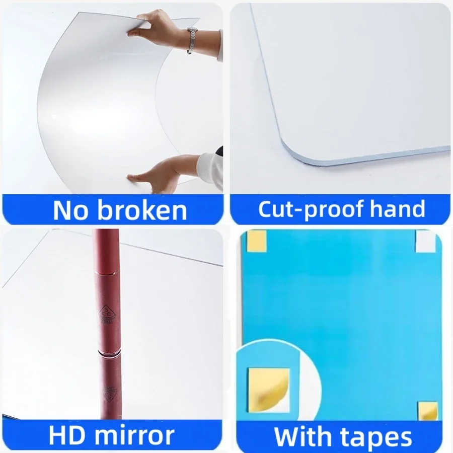 1. Acrylic Material: Flexible and will not break, safer than glass mirror.
