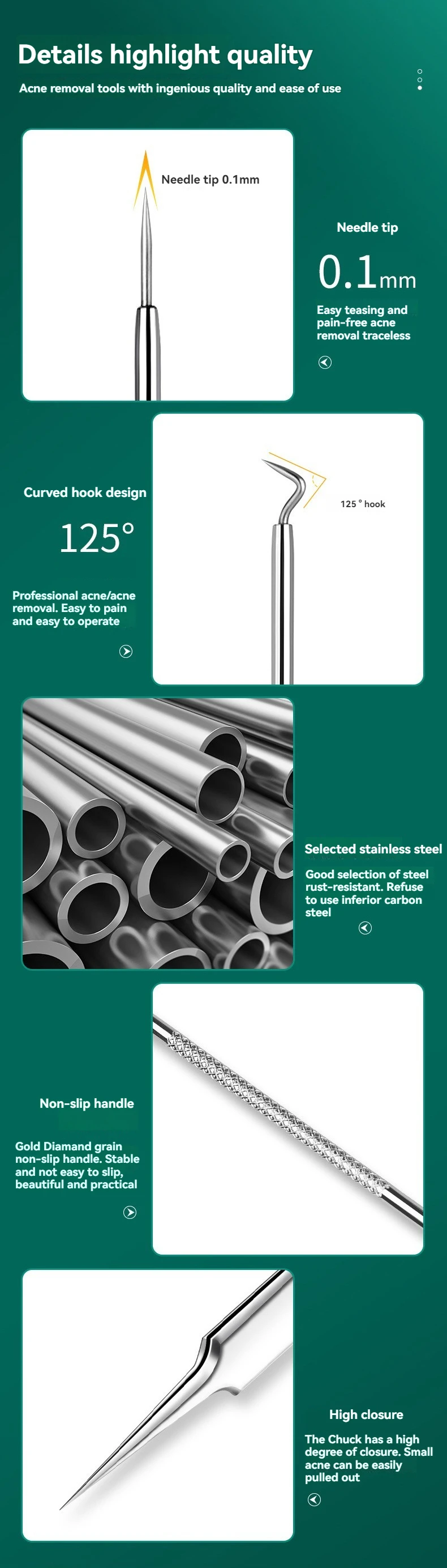 • Stainless Steel Material :Crafted from high-quality stainless steel, these acne tools are durable, rust-resistant, and designed to last, ensuring you get your money's worth.