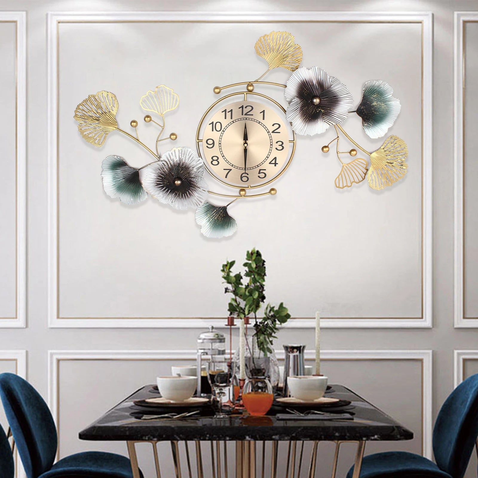Unique Design: This wall clock features a unique ginkgo leaf design, symbolizing harmony and well-being. It combines Northern Europe with light luxury art to enhance the elegance of your home.