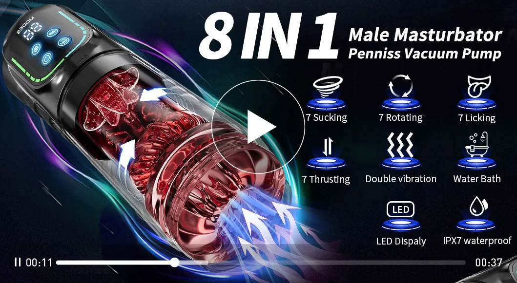 APP LED Automatic Male Masturbator Cup 7 Sucking Rotating Licking Thusting Modes Pocket Pussy Stroker Blowjob Sex Toys For Men