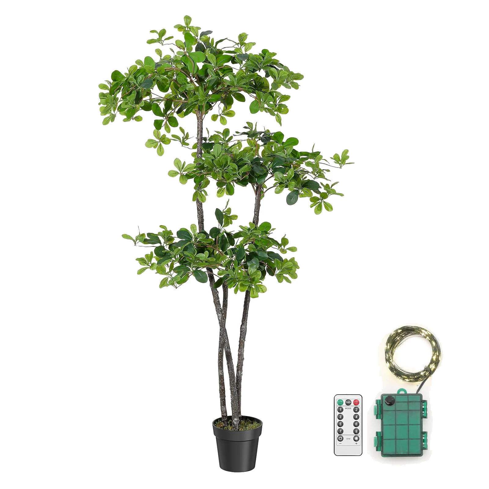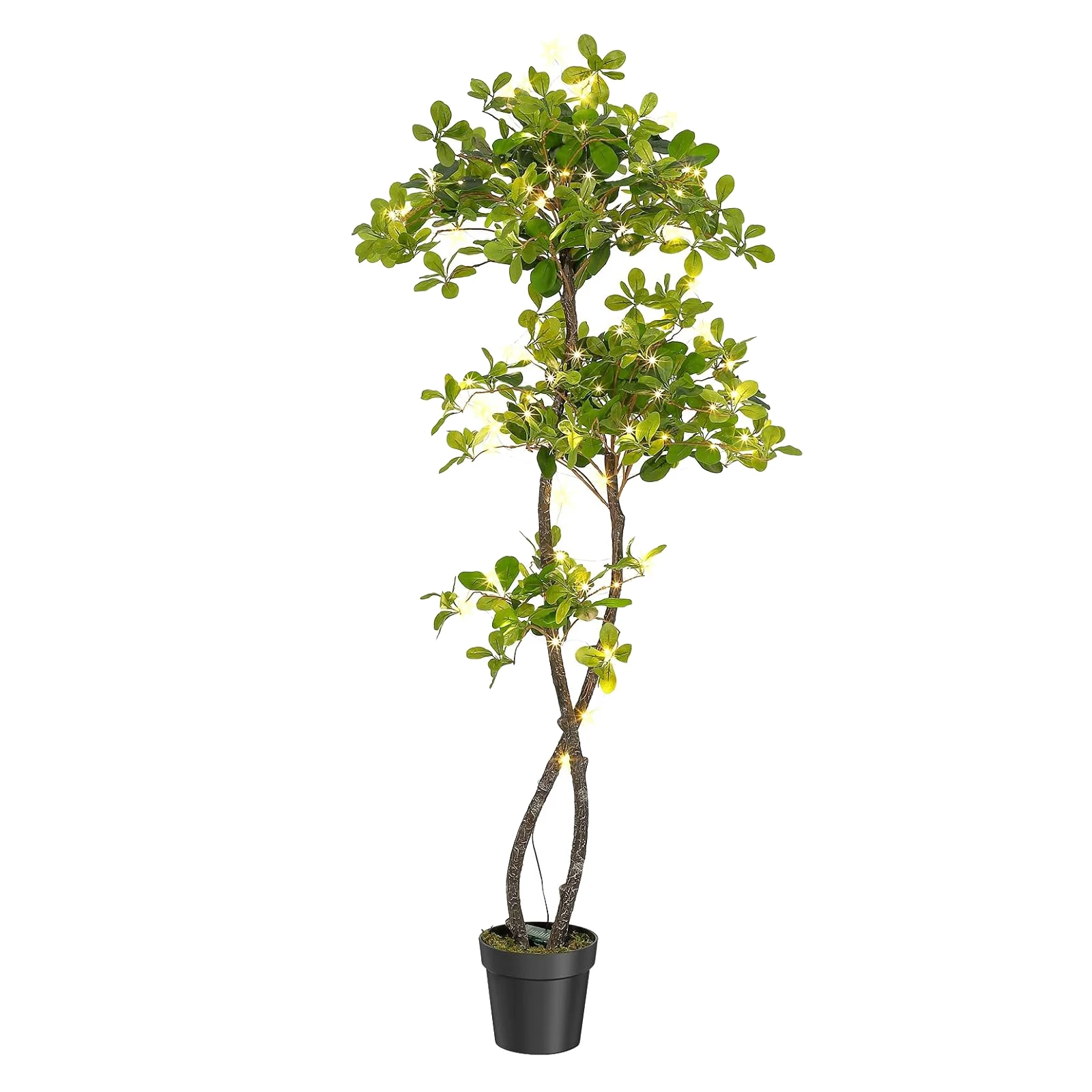 Artificial Indoor Plants, 6ft Fake Black Olive Tree with 100 LED Lights, Tall Fake Plants in Plastic Pot, Artificial Tree for Ho