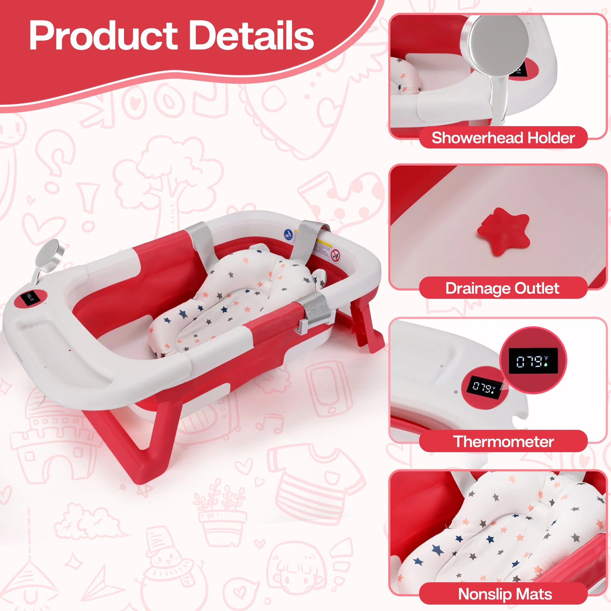 Hign-concerned Newborn-To-Toddler Baby Bathtub With Cushion And Thermometer Portable Tub