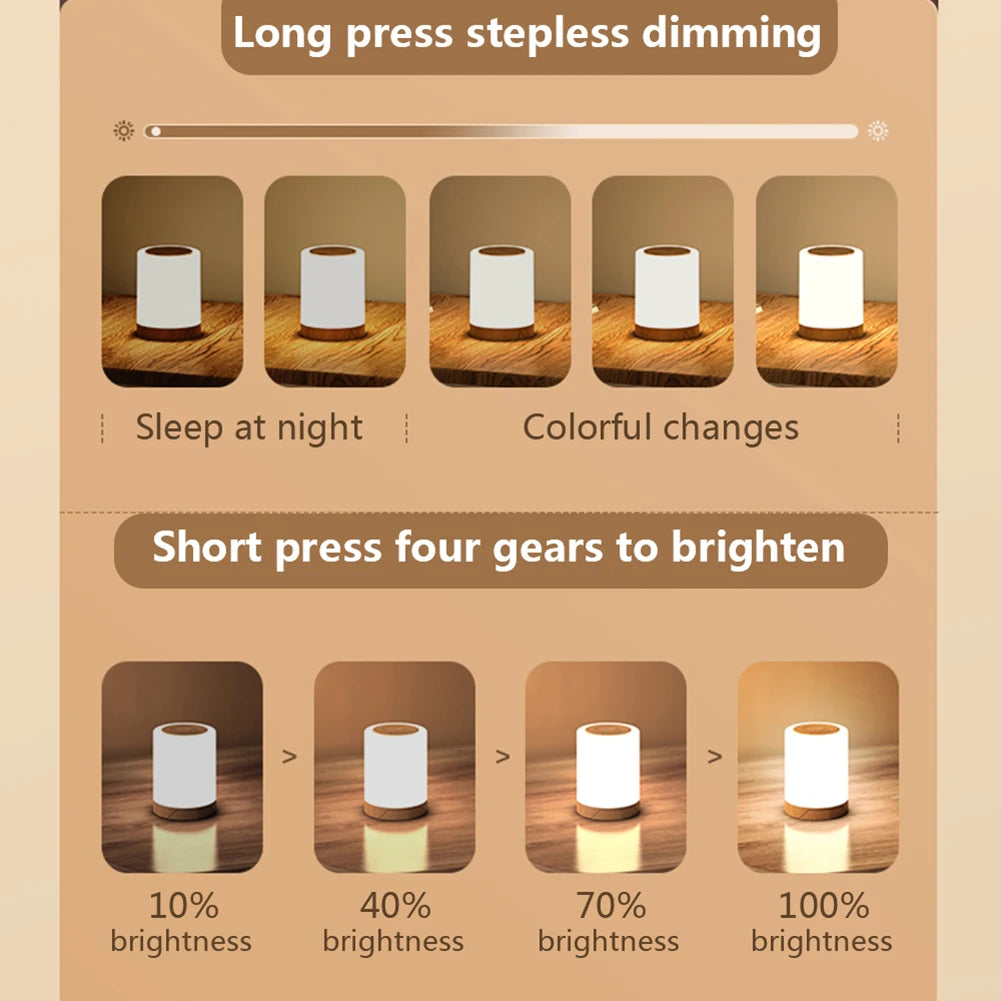 Elevate your space with the Alloet Dimmable RGB Bedside Lamp, a compact, battery-powered nightstand light that blends color, warmth, and convenience.