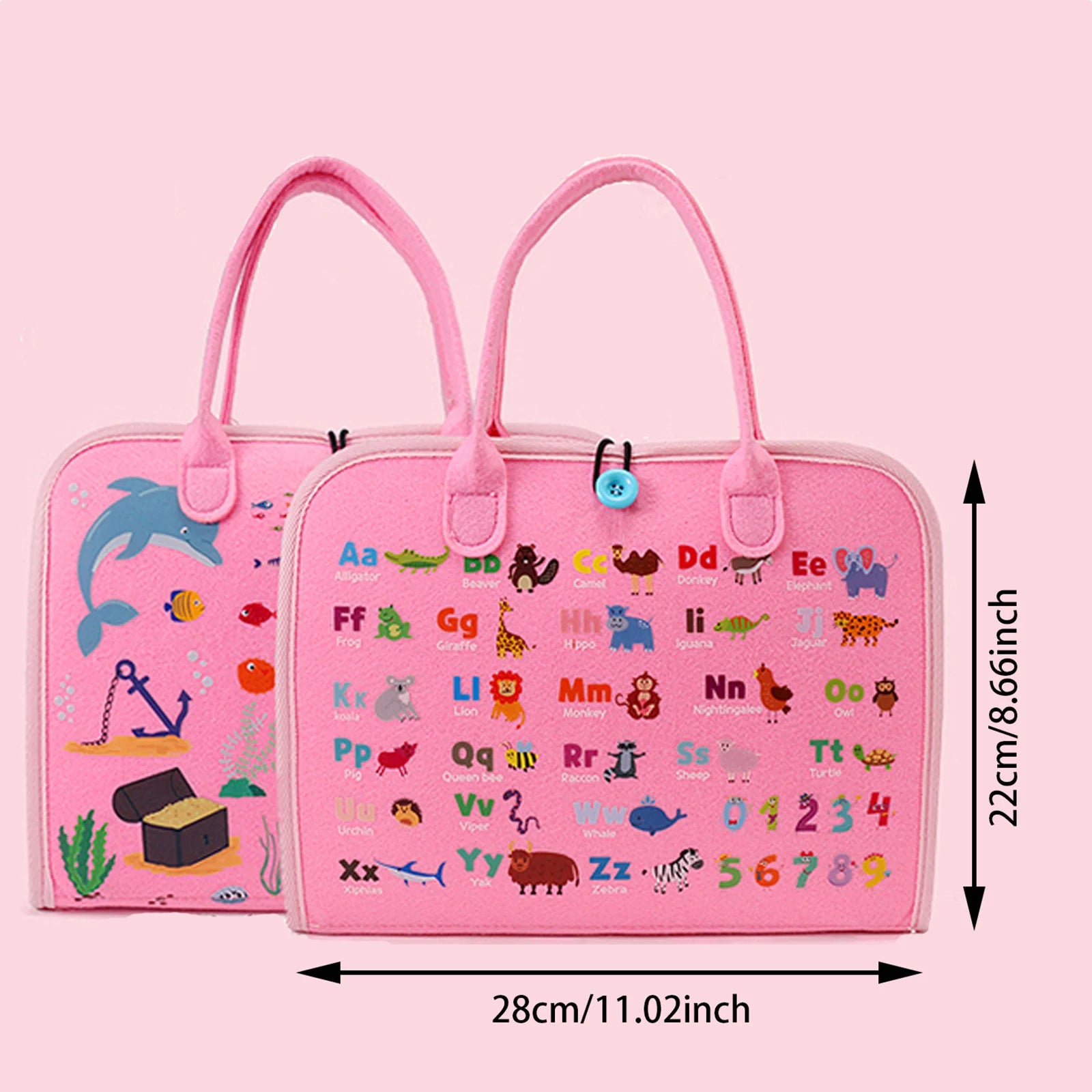 Versatile 25-in-1 Activities Busy Board: Packed with a plethora of engaging activities, this busy board offers alphabet learning on the front and delightful dinosaur illustrations on the back. Inside, discover 6 pages brimming with interactive activities such as buckles, lace tying, zippers, numbers, telling time, and dates. Crafted predominantly from felt, this lightweight busy board features plastic components including turning gears, buckles, zippers, buttons, and more.