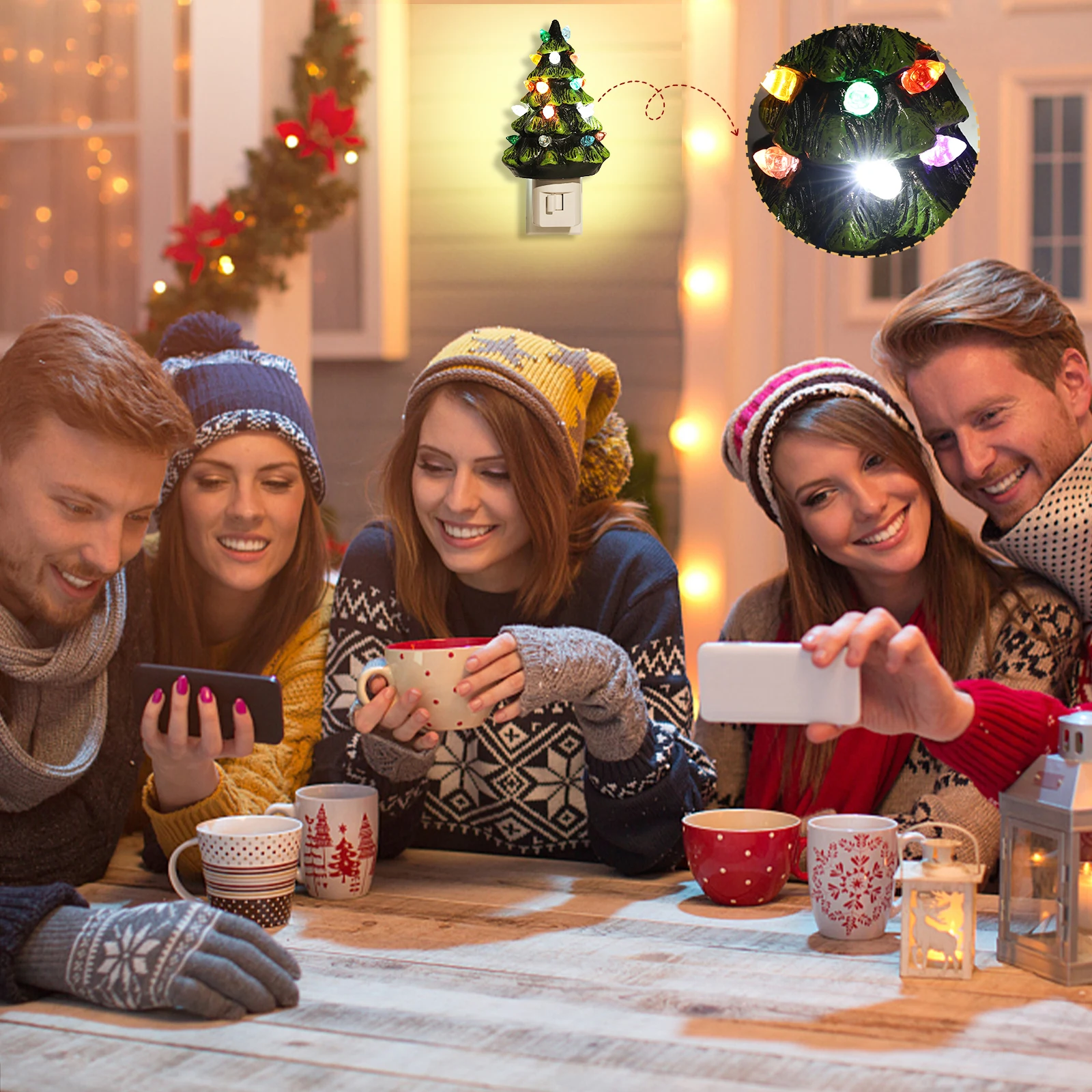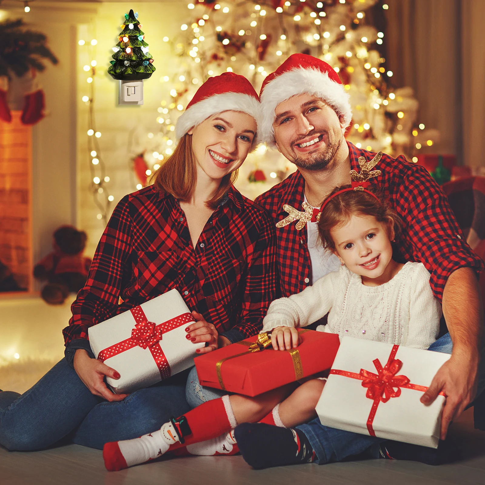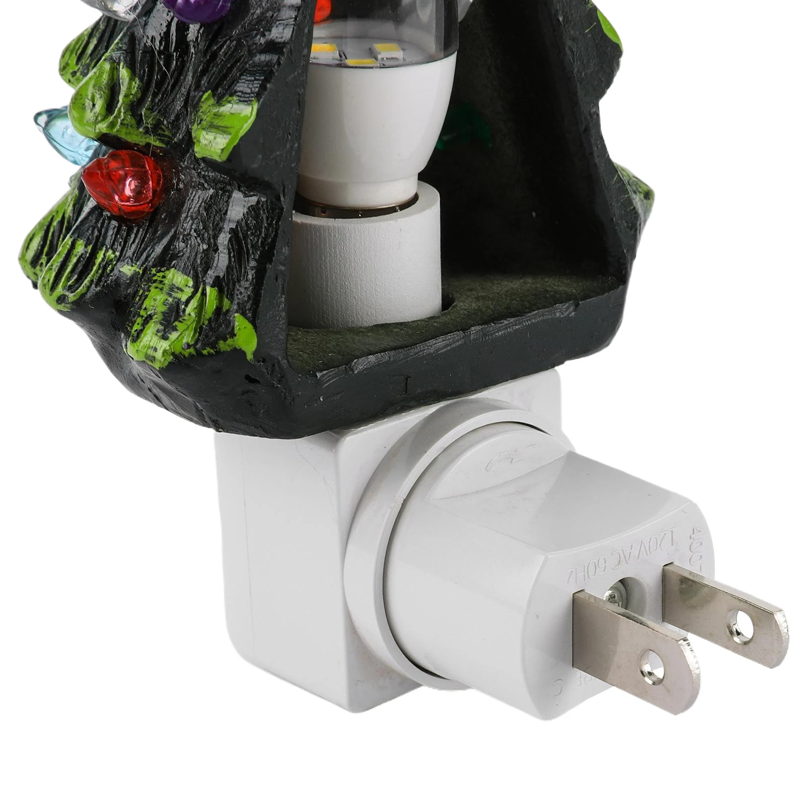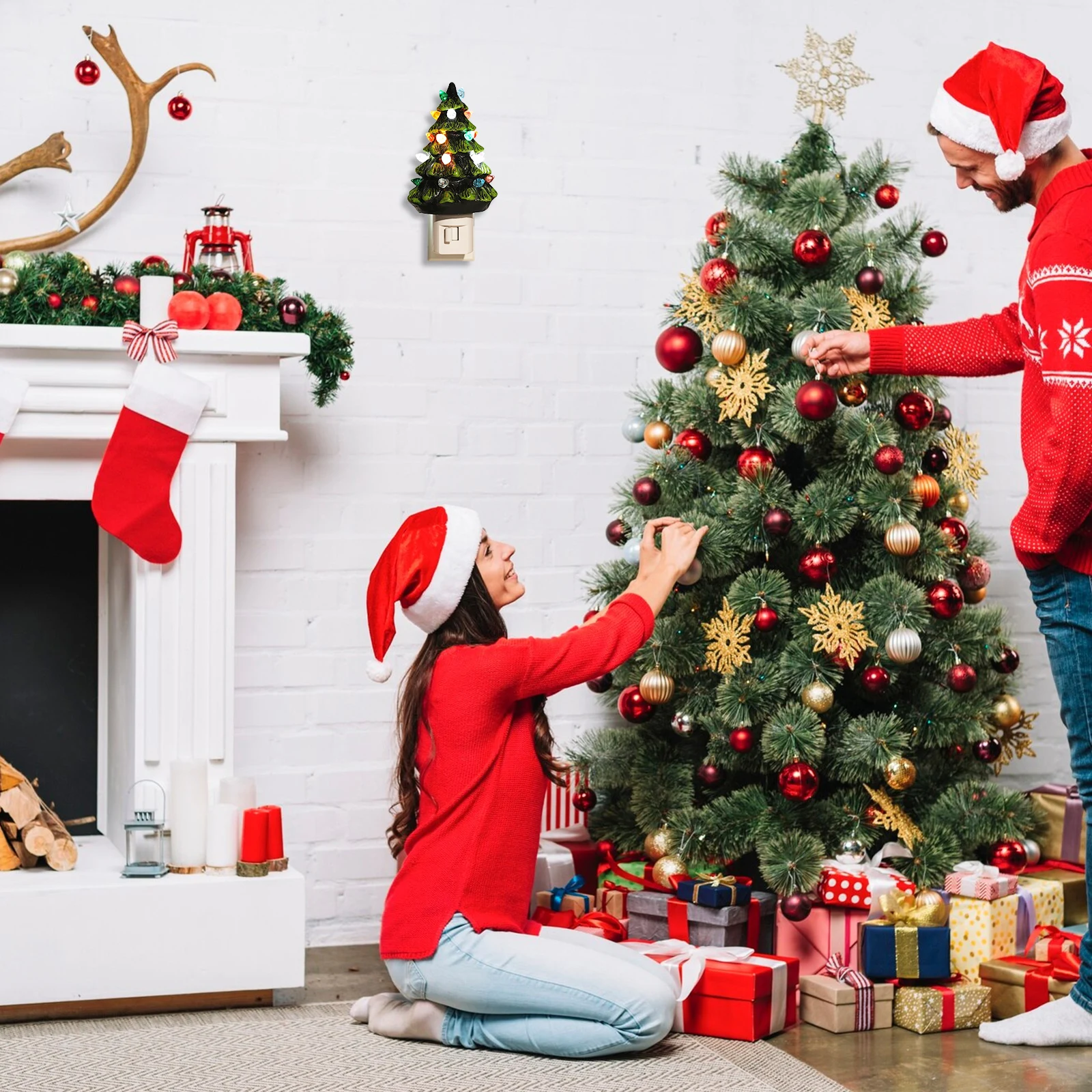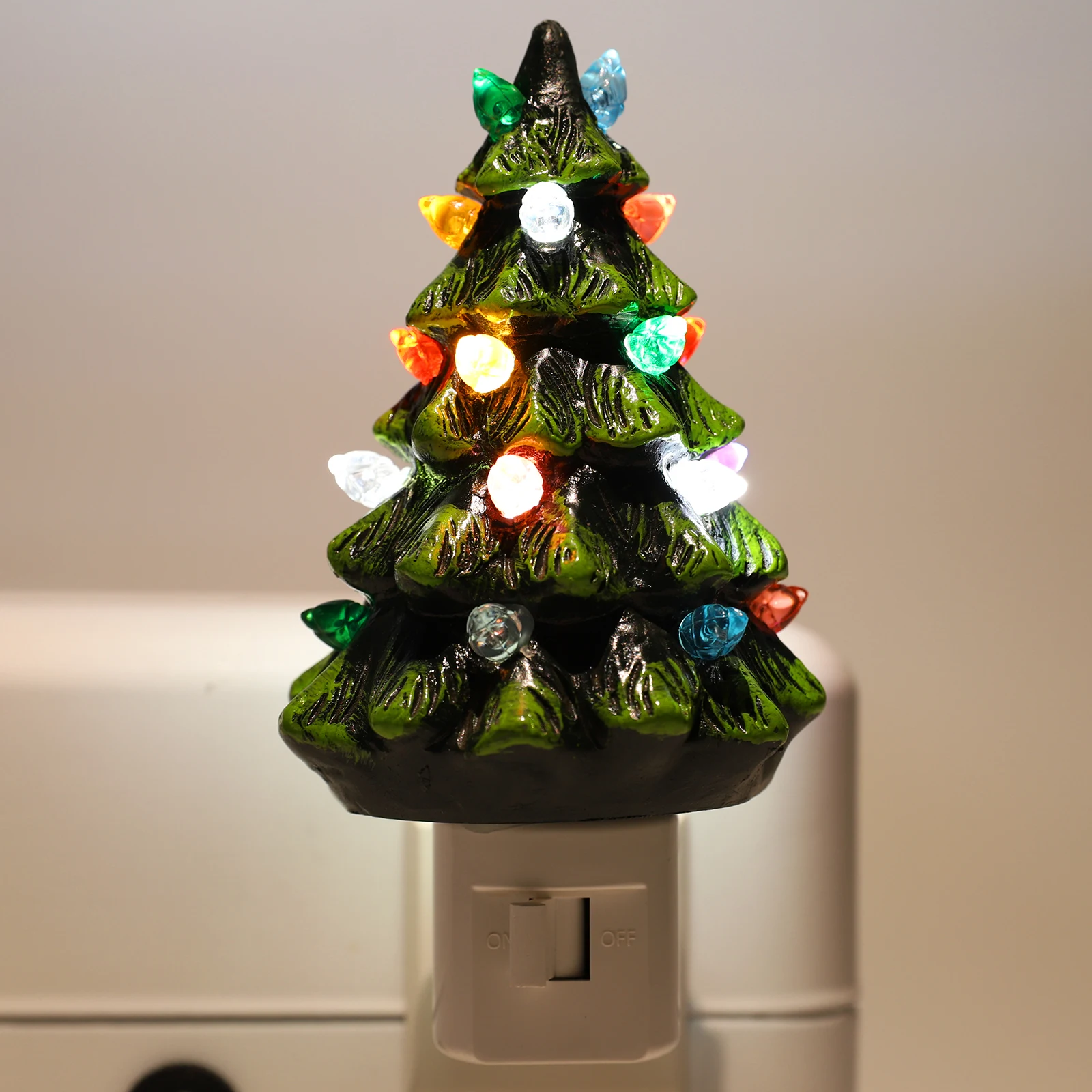 | Resin Christmas Tree Night Light 360 Degree Swivel Plug Wall Plug in Night Light Hand Painted Resin Vintage Night Light for Kitchen Bedroom Bedside Lamp Features: 1.Resin Christmas Tree Night Light: This charming Christmas tree night light is crafted from stable materials and hand-painted with a smooth surface. Its sturdy design is both safe and long-lasting, ensuring every night is filled with starlight. 2.Pleasing Bright Glow: The classic Christmas tree wall plug in night light projects a bright glow through the large transparent bulb in the center. When lit, the colorful bulbs emit a beautiful shine, adding a highlight to your home and complementing any room. 3.Switch & Rotating Plug: For convenience, this LED wall lamps night light features a pre-installed switch, eliminating the need for frequent plugging and unplugging. The wall lights plug rotates 360 degrees to accommodate different directions, fitting most US standard sockets. 4.Illuminate the Holiday Season: Standing approximately 14.7cm tall, this beautiful resin vintage night light is for creating a cozy Christmas atmosphere in dim hallways, countertops, work surfaces, bedrooms, or bathrooms. It can also decorate holiday walls, living rooms, dining areas, porches, or offices. 5.Cute Christmas & Valentine's Gift: This Christmas tree night light set adds a joyful touch to your holiday decorations and makes an excellent Christmas gift for children, family, friends, and colleagues. Specification: Note: Due to different monitor settings and lighting conditions, the actual color of the item may vary slightly from the pictures. Thanks for your understanding! Please allow a 1-2 cm difference in measurements due to manual measuring. 1 x Christmas Tree Night Light |