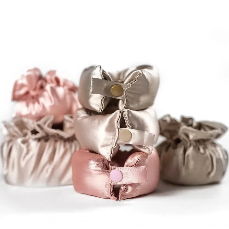 Enjoy heatless curling with a satin-lined headband bonnet that works while you rest.