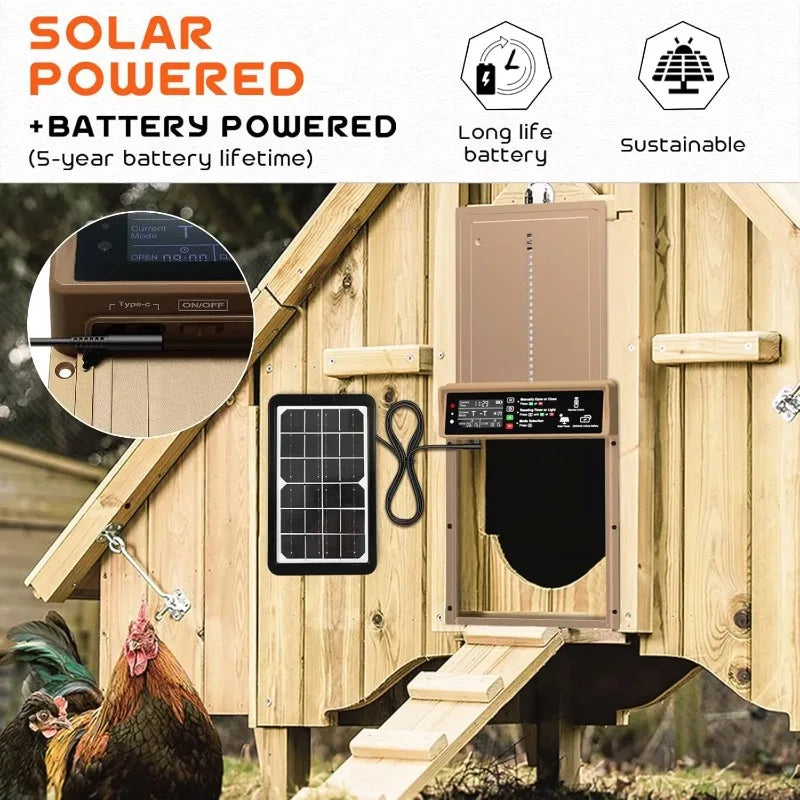 - Flexible power: solar panel and USB charging provide reliable operation even when daylight varies, helping you manage the coop with confidence.