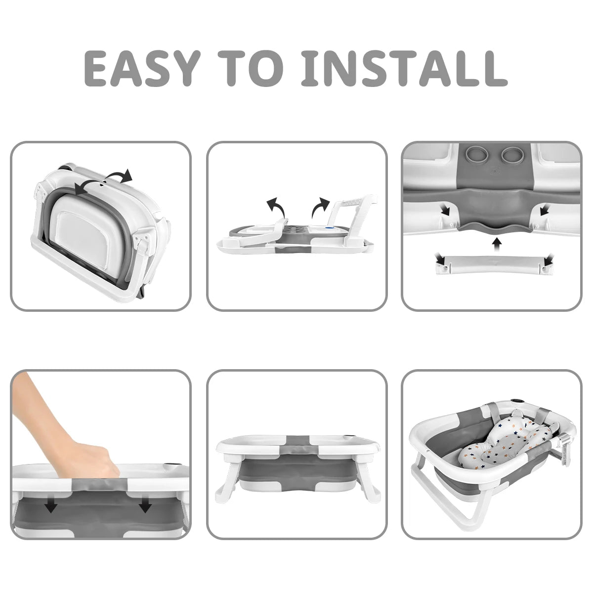 Make bath time safer and simpler with this foldable baby bathtub cushion thermometer.