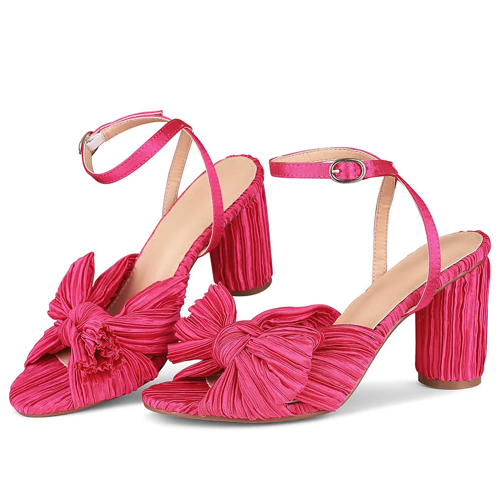 GIGIFOX Bowknot Elegant Super High Heel Sandals Pleated Ankle Strap Open Toe Round Heel Buckle Strap Shoes Fashion Dress Sandals