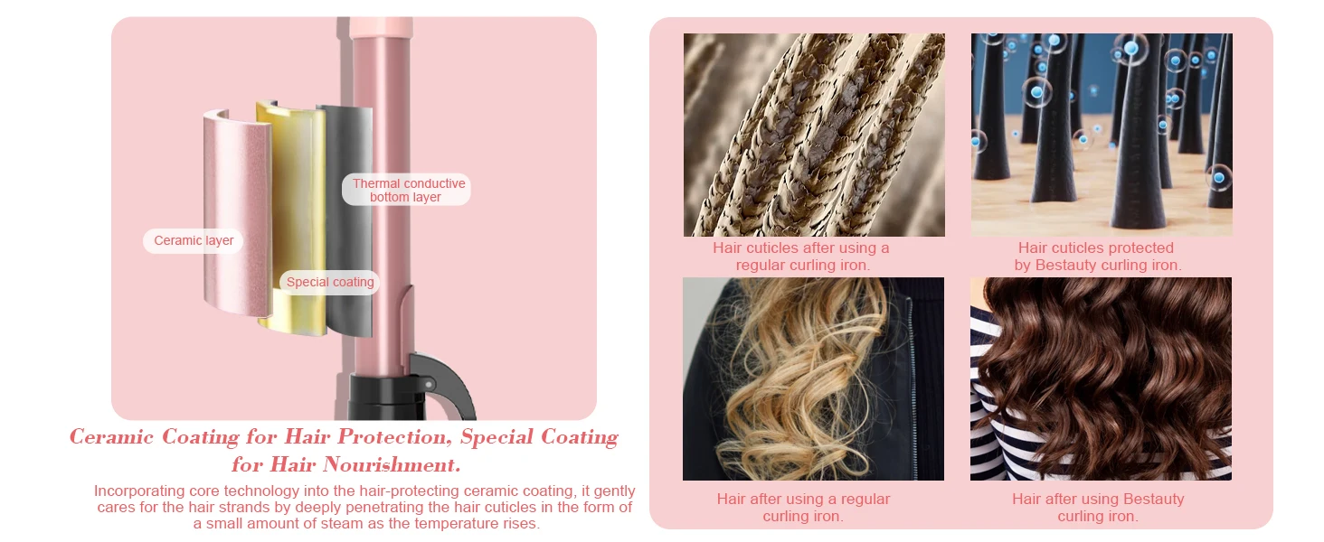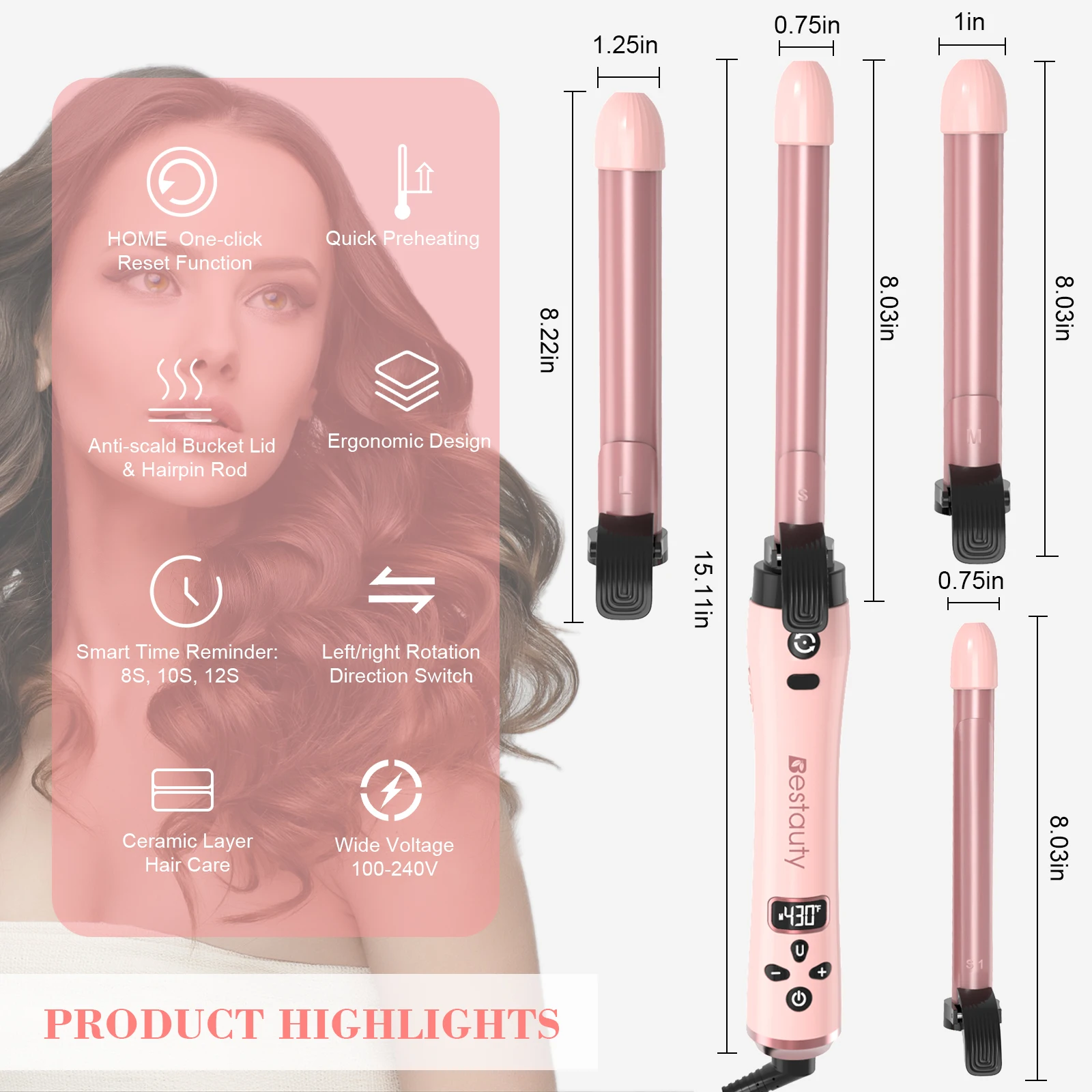 Automatic Rotation: The curling wand features an automatic rotation function, making it easy to create perfect curls every time.