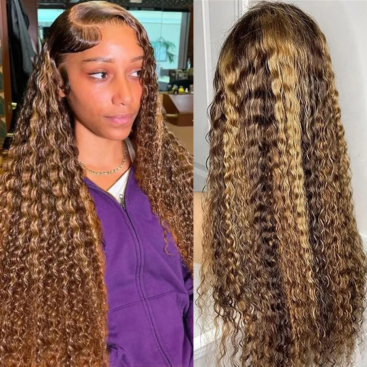 Honey Blonde Wig Human Hair Quality: 12A Grade Brazilian Virgin Deep Wave Lace Frontal Wigs Human Hair,13x6 Highlight Deep Wave Lace Front Wigs Human Hair Pre Plucked with Baby Hair Around, Deep Curly Human Hair Wigs for Women Wet and Wavy, Littlle Shedding, True to length