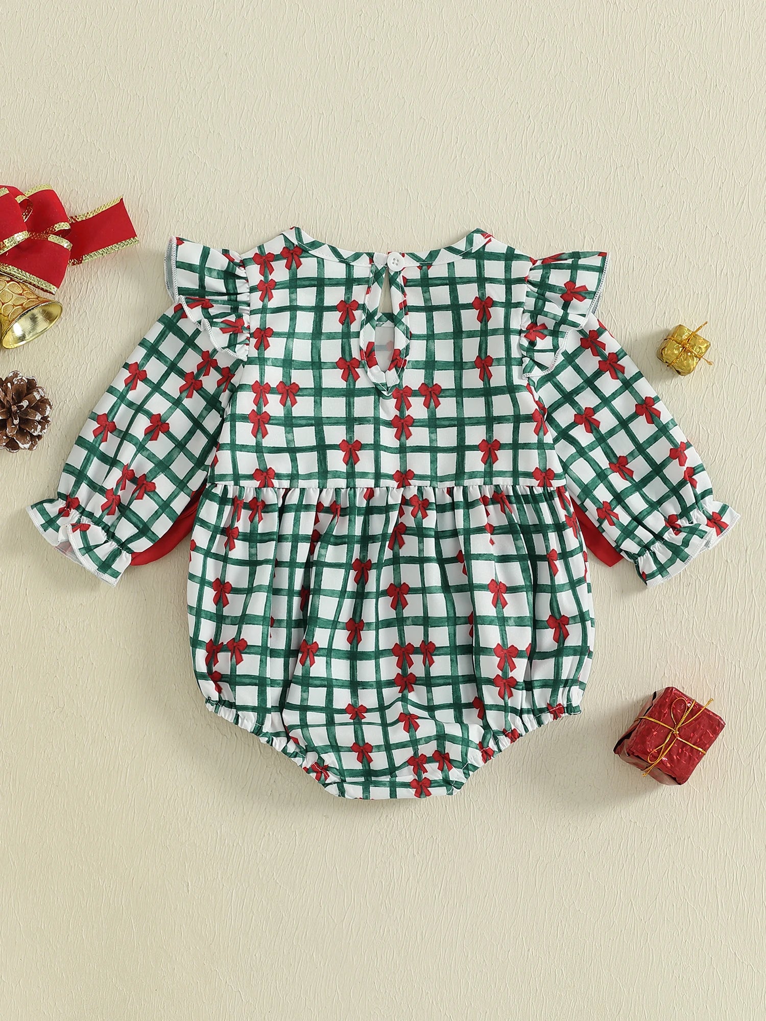 Dress your little one in festive whimsy with this Green Reindeer Print Christmas Romper—soft, comfy, and ready for winter festivities.