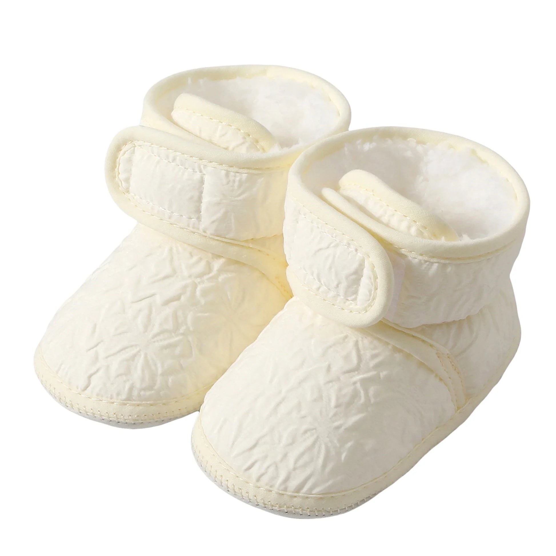 - Cozy interior featuring plush lining and fabric upper for warmth, softness, and gentle support during indoor and outdoor play.