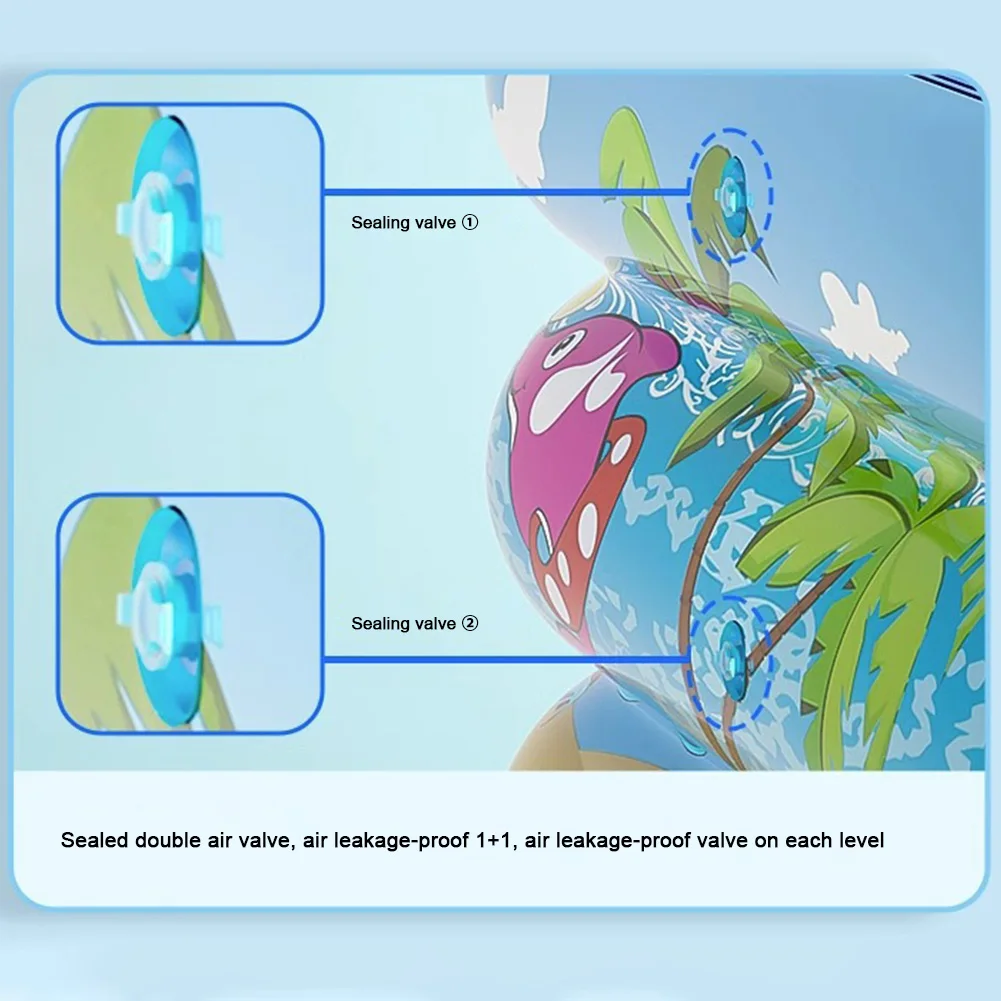 - Safe PVC construction with kid-friendly cartoon patterns provides a cheerful, gentle space for splashy fun and splashy smiles.