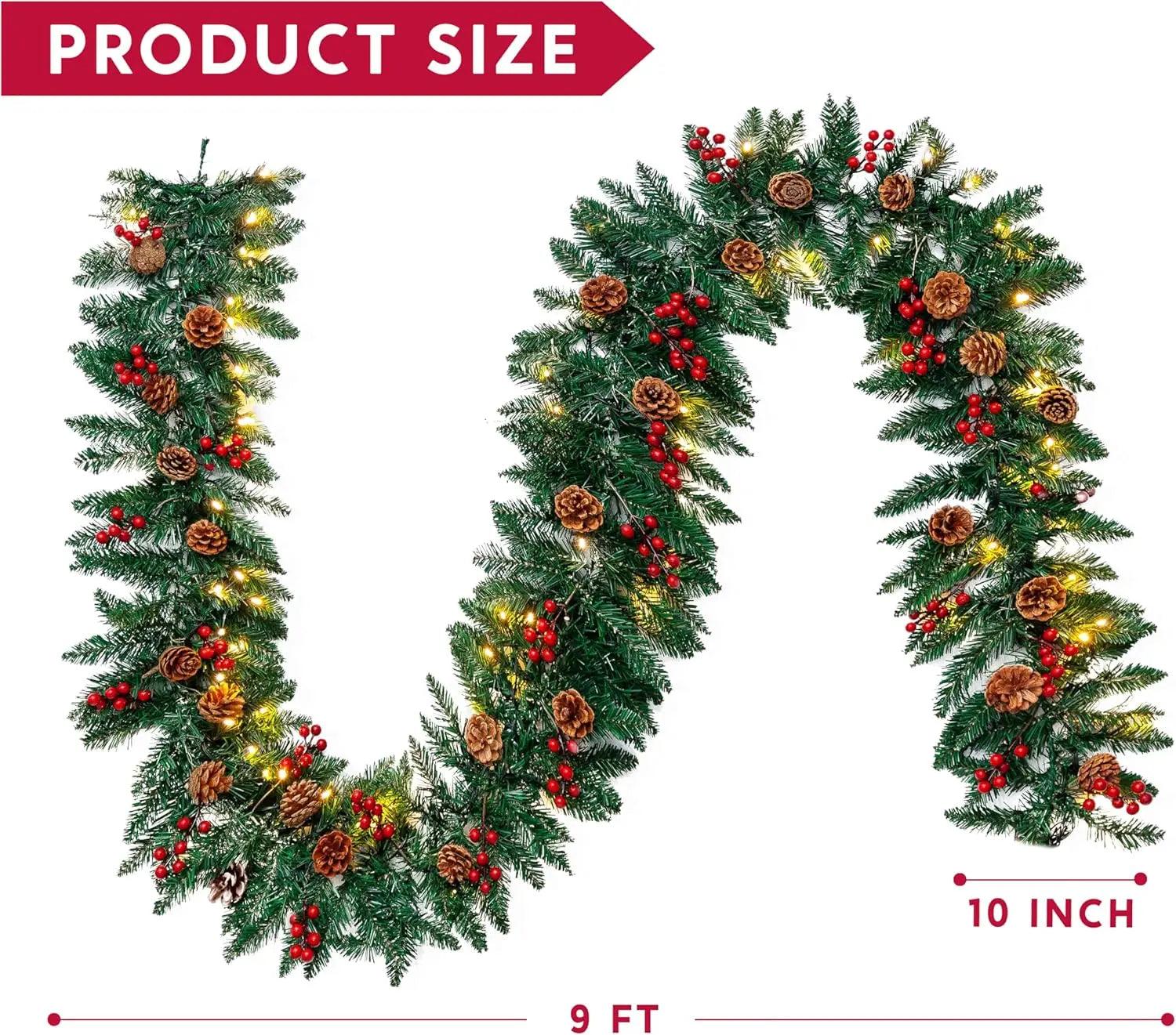 Joyfy Artificial Christmas Garland Prelit With LED Lights Pine Cones And Red Berries For Home Office Decor