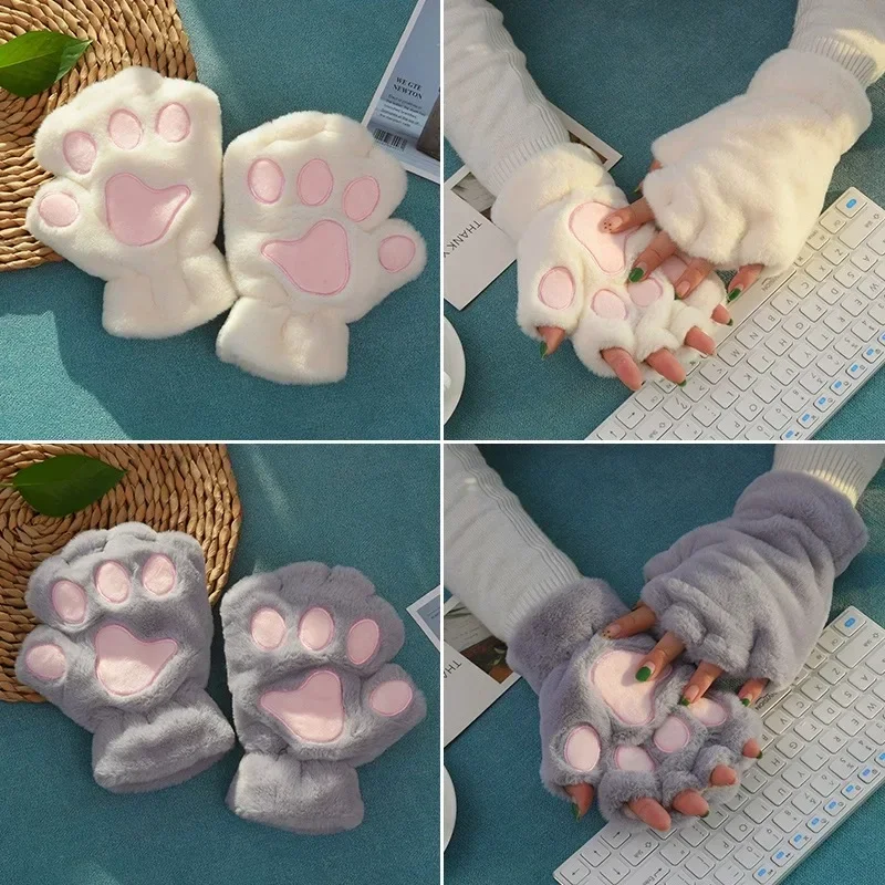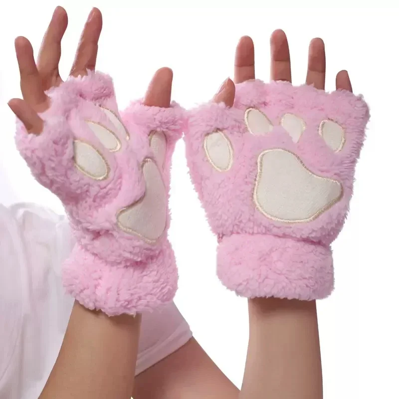 Lovely Plush Cat Claw Paw Gloves Plush Mittens Warm Soft Plush Short Fingerless Fluffy Bear Gloves Costume Half Finger Gloves