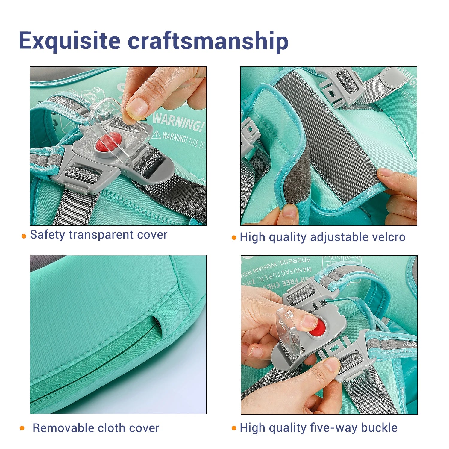 - Five-way safety harness keeps your baby from slipping, with adjustable fit, soft crotch strap, and supportive chest/back rest for reliable, secure buoyancy.