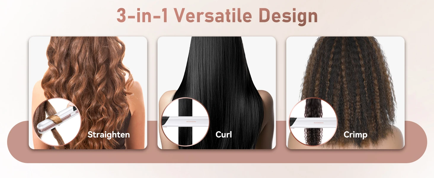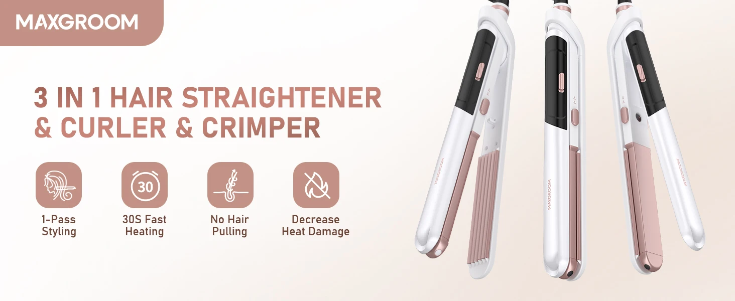 MAXGROOM 3In 1 Professional Hair Straightener Curlering PTC Ceramic Fast Heating Curler Adjustable Temperature Hair Straightener