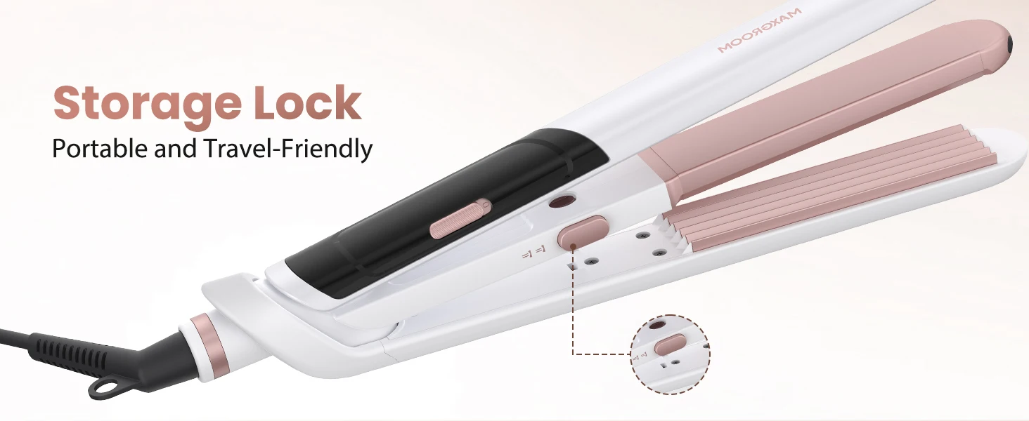 【Portable&ightweight curling iron】This hair straightener features an anti-hot design on the head, enhancing user safety. Its collapsible structure and lightweight design (weighing only 407g) make storage exceptionally convenient.