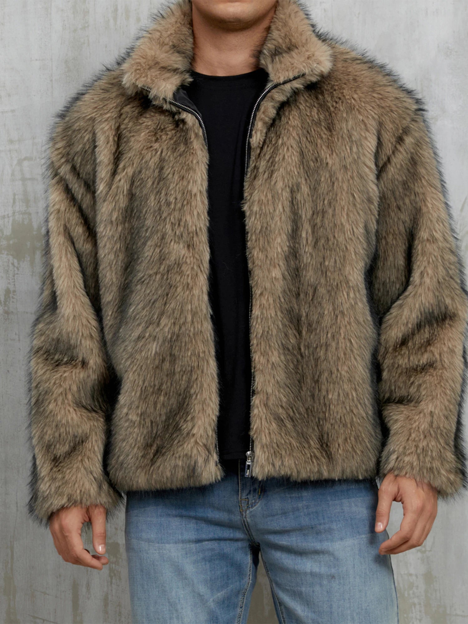 Step into winter with confidence in this CN Guangdong Men Faux Fur Jacket, a stylish, warm coat with a thick collar that instantly upgrades your cold-weather look.