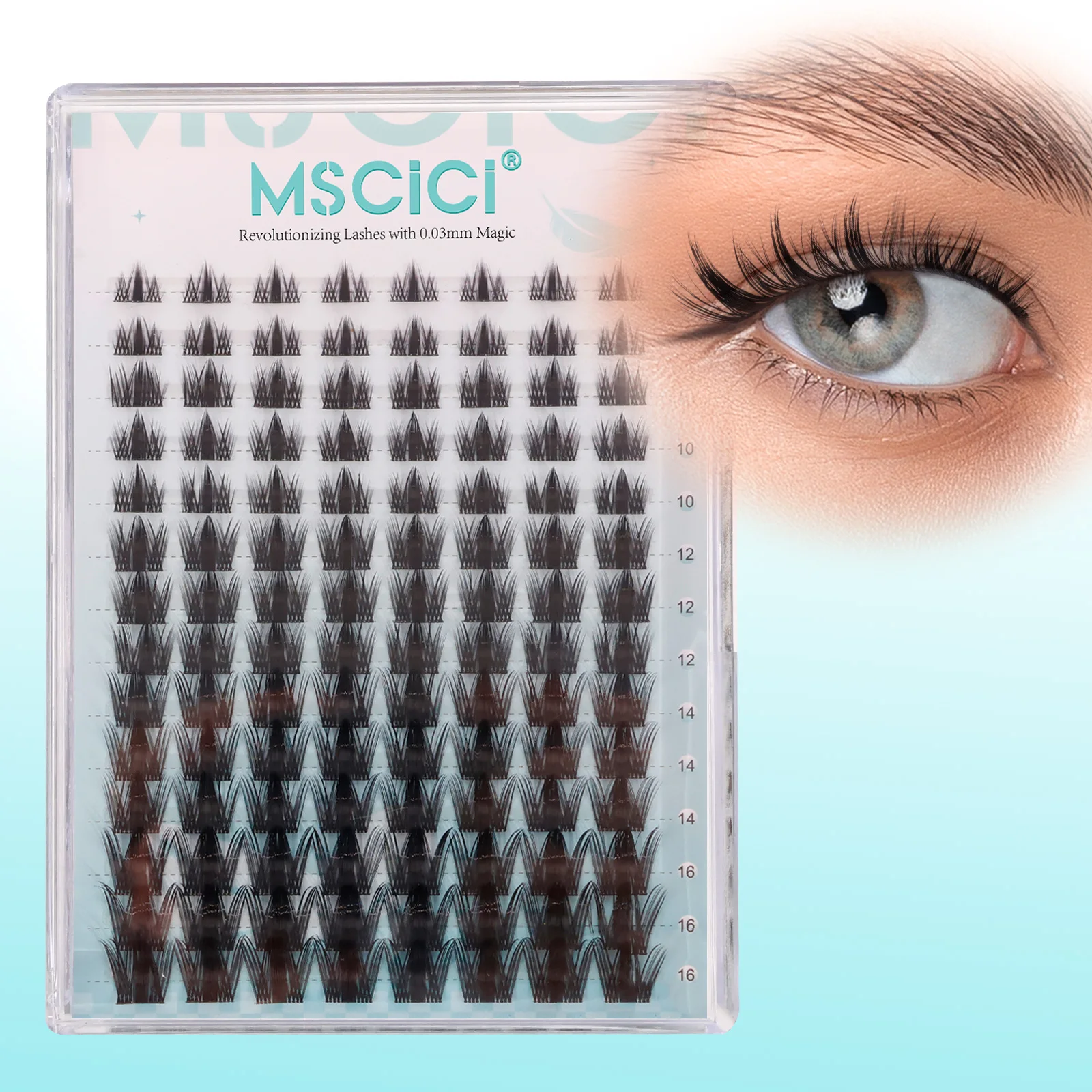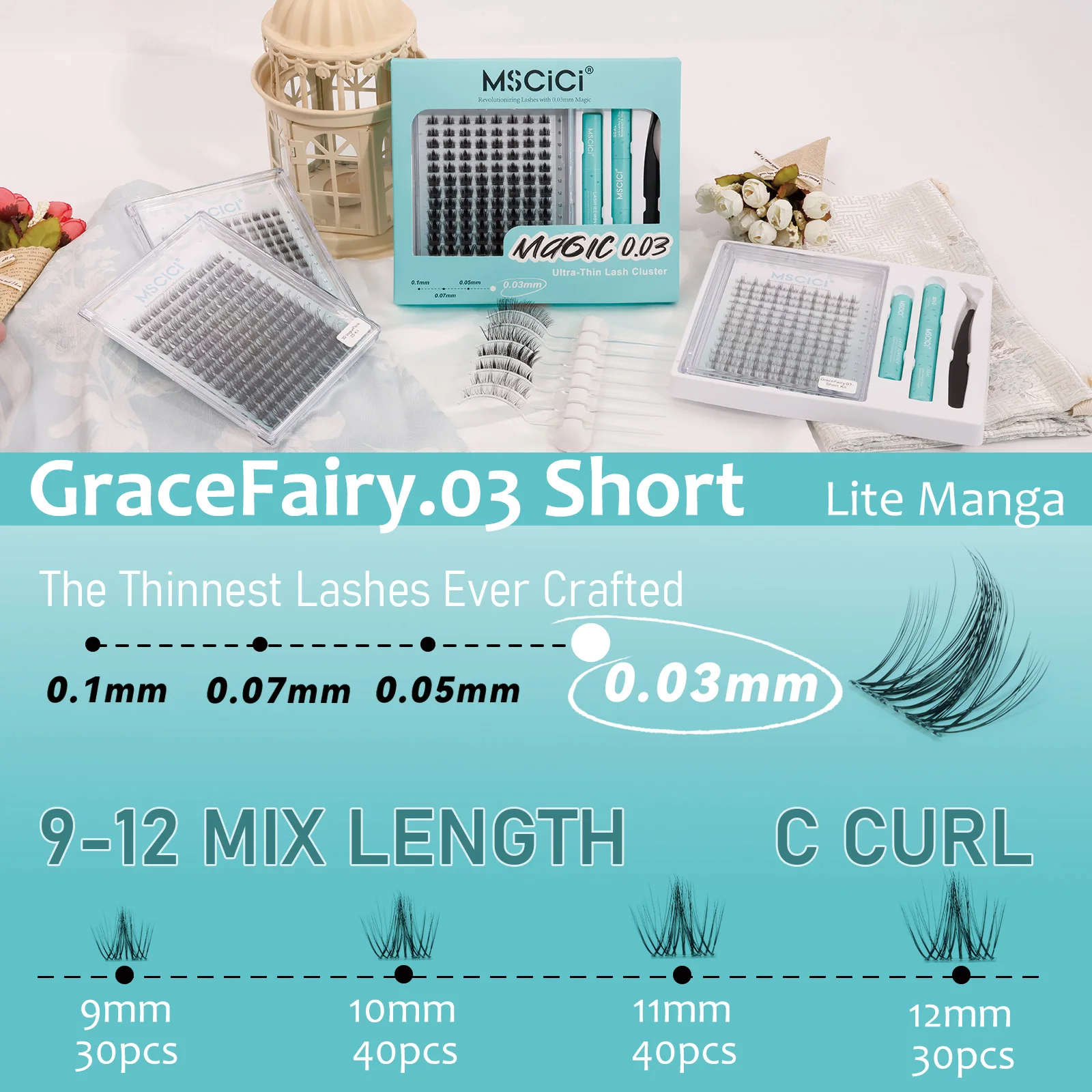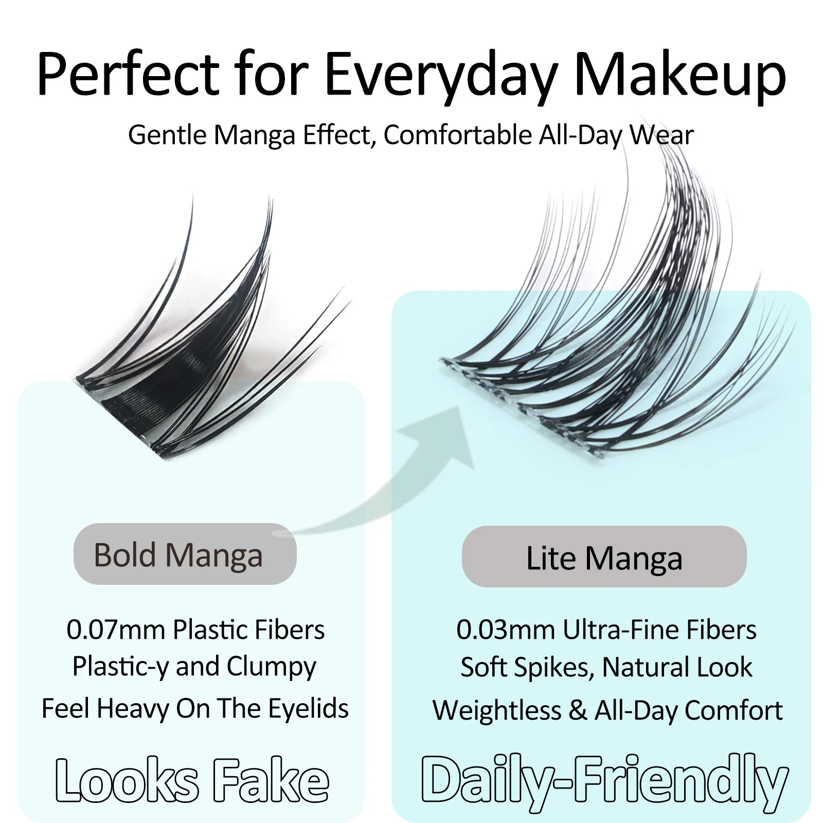 Mscici Thinnest 0.03mm Natural Spike Anime Cluster Design Manga Lash Clusters Kit Waterproof Clear Lash Glue For Sensitive Eyes