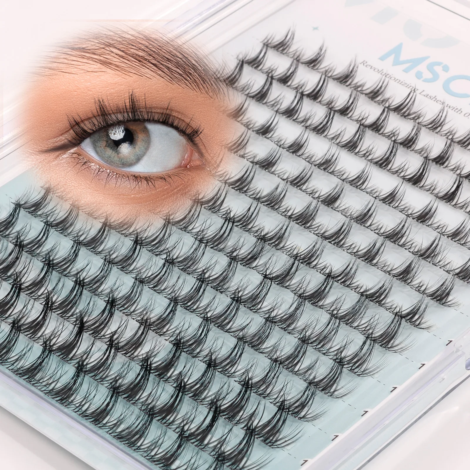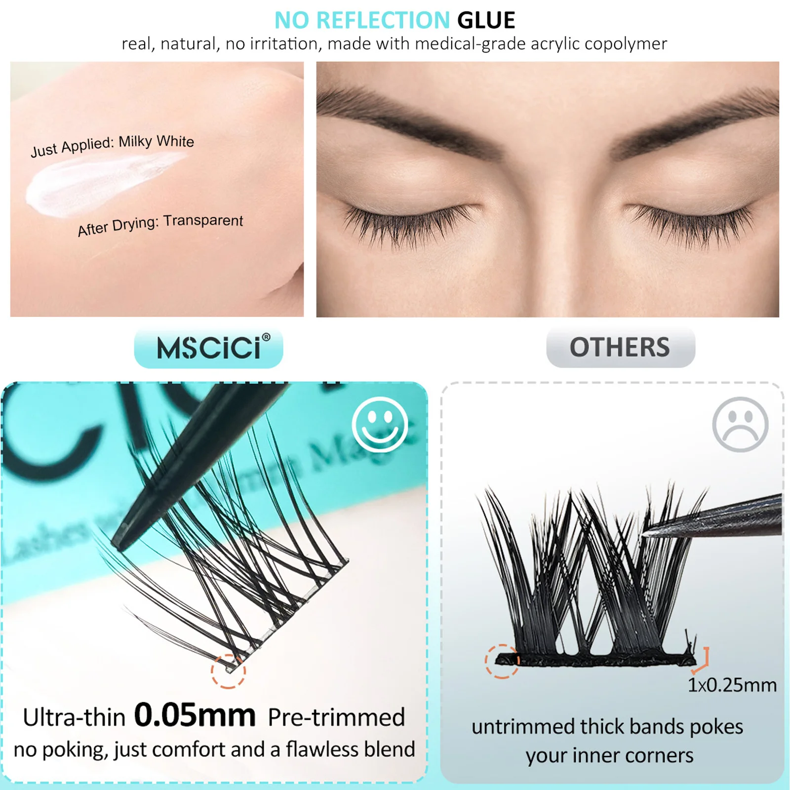 Mscici Thinnest 0.03mm Natural Spike Anime Cluster Design Manga Lash Clusters Kit Waterproof Clear Lash Glue For Sensitive Eyes Make Up