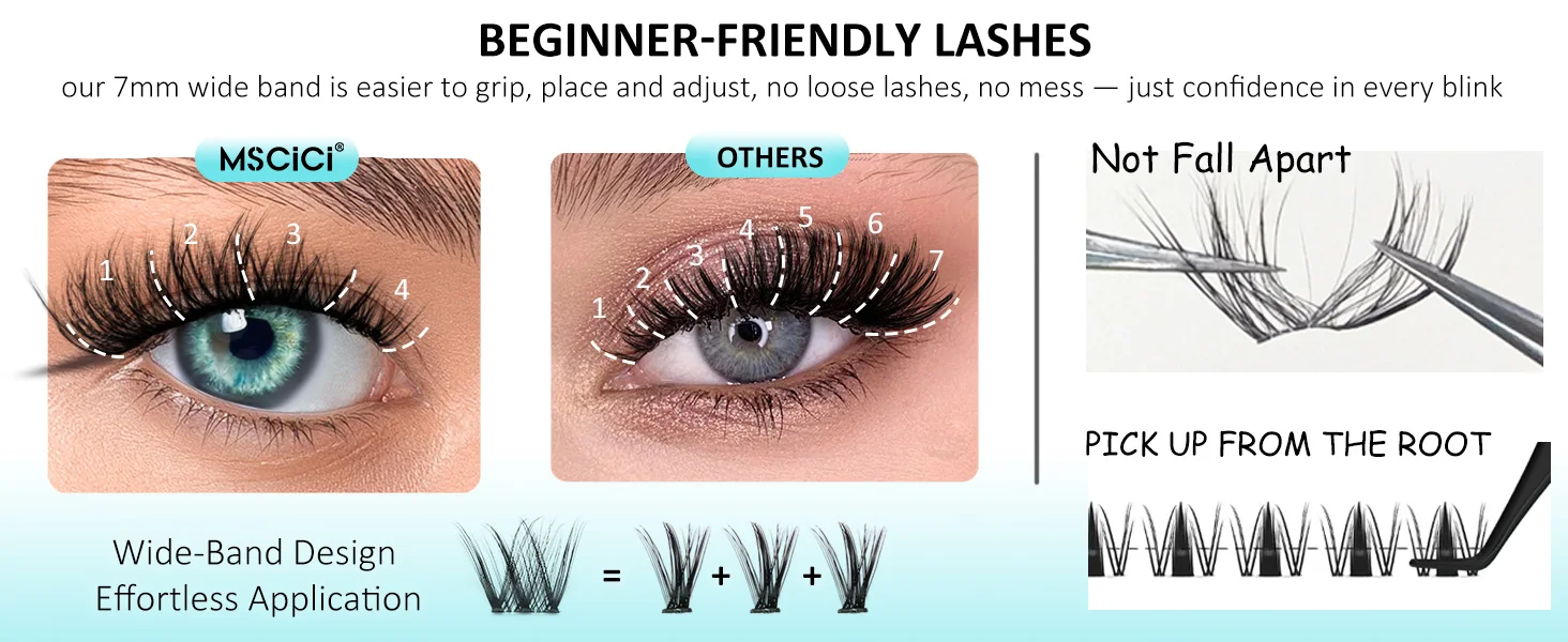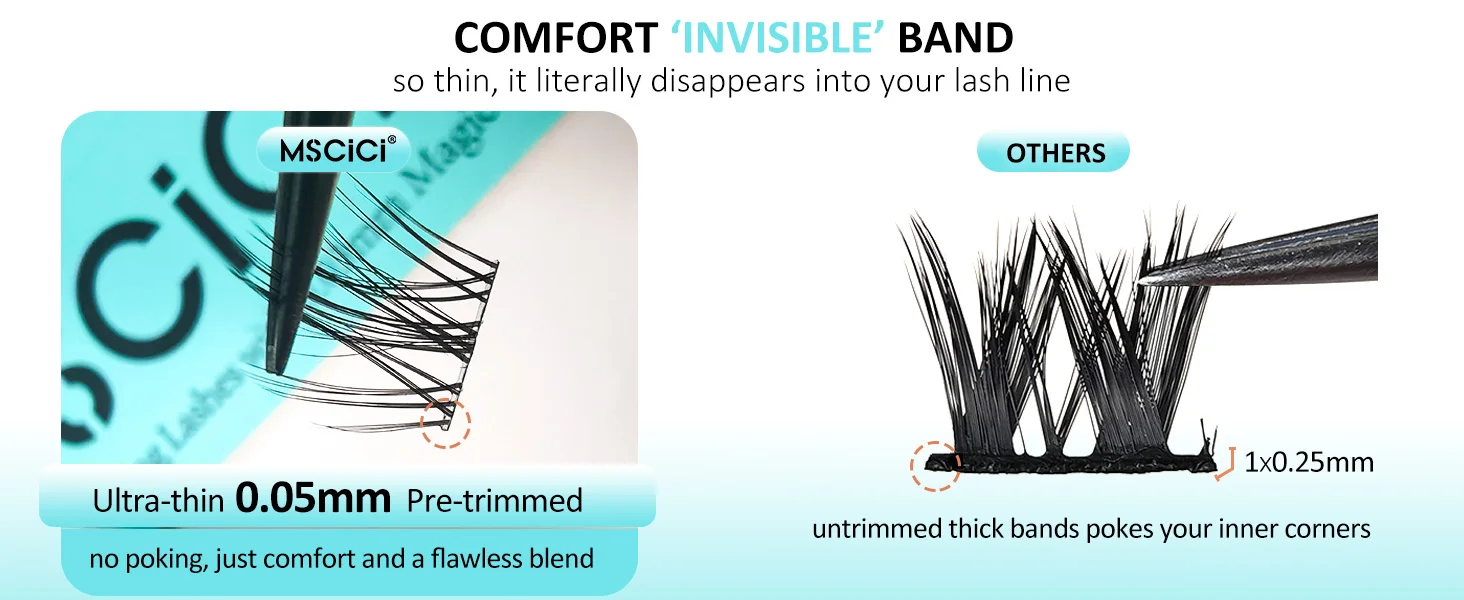 Flawless Natural Look: Cluster Lashes Kit Features An Invisible Ultra-Thin Band,Making The Lashes Natural Looking Like Yours