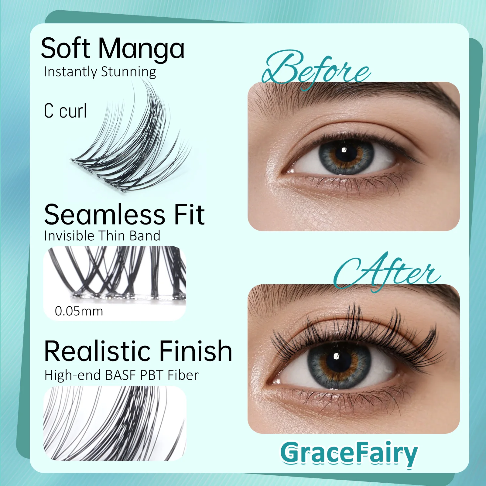 DlY Natural Anime Cluster Lashes Length: 8-16mm C & D Curl,Thinnest And Softest Eyelashes