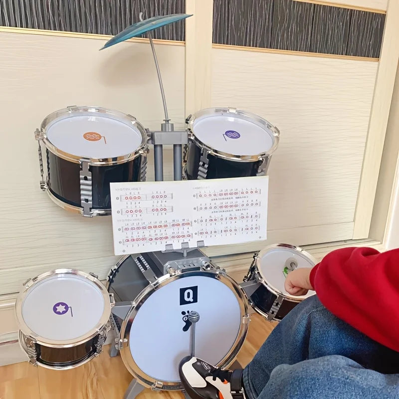 Ignite your kid's rhythm with this European American-inspired rock drum toy set, designed for beginner players.