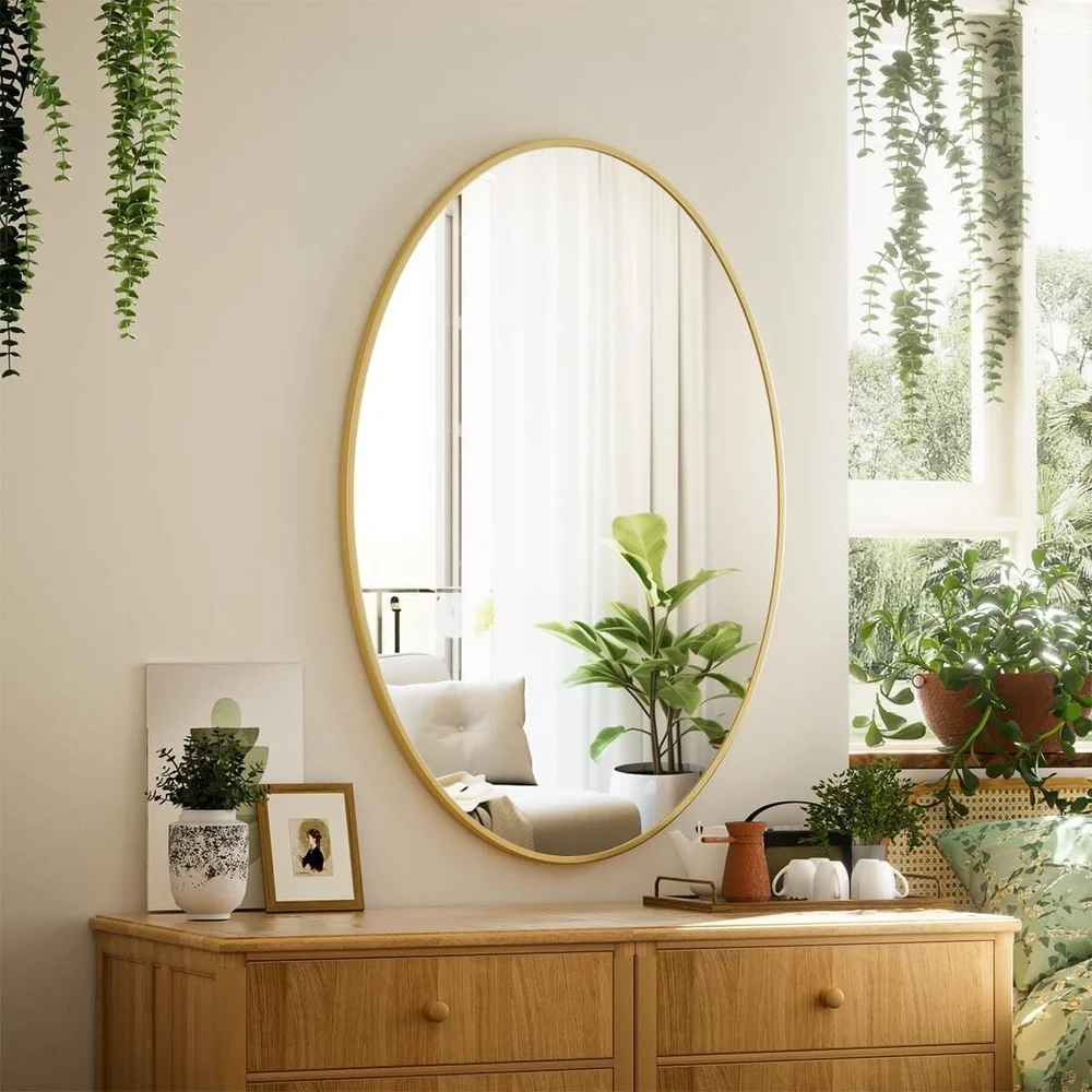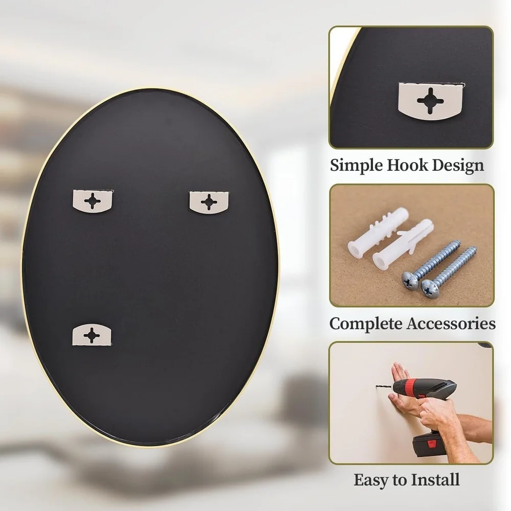 Oval Bathroom Mirror Wall Mounted Metal Frame High Definition Glass Easy Install Decorative Vanity Mirror Shatter Resistant