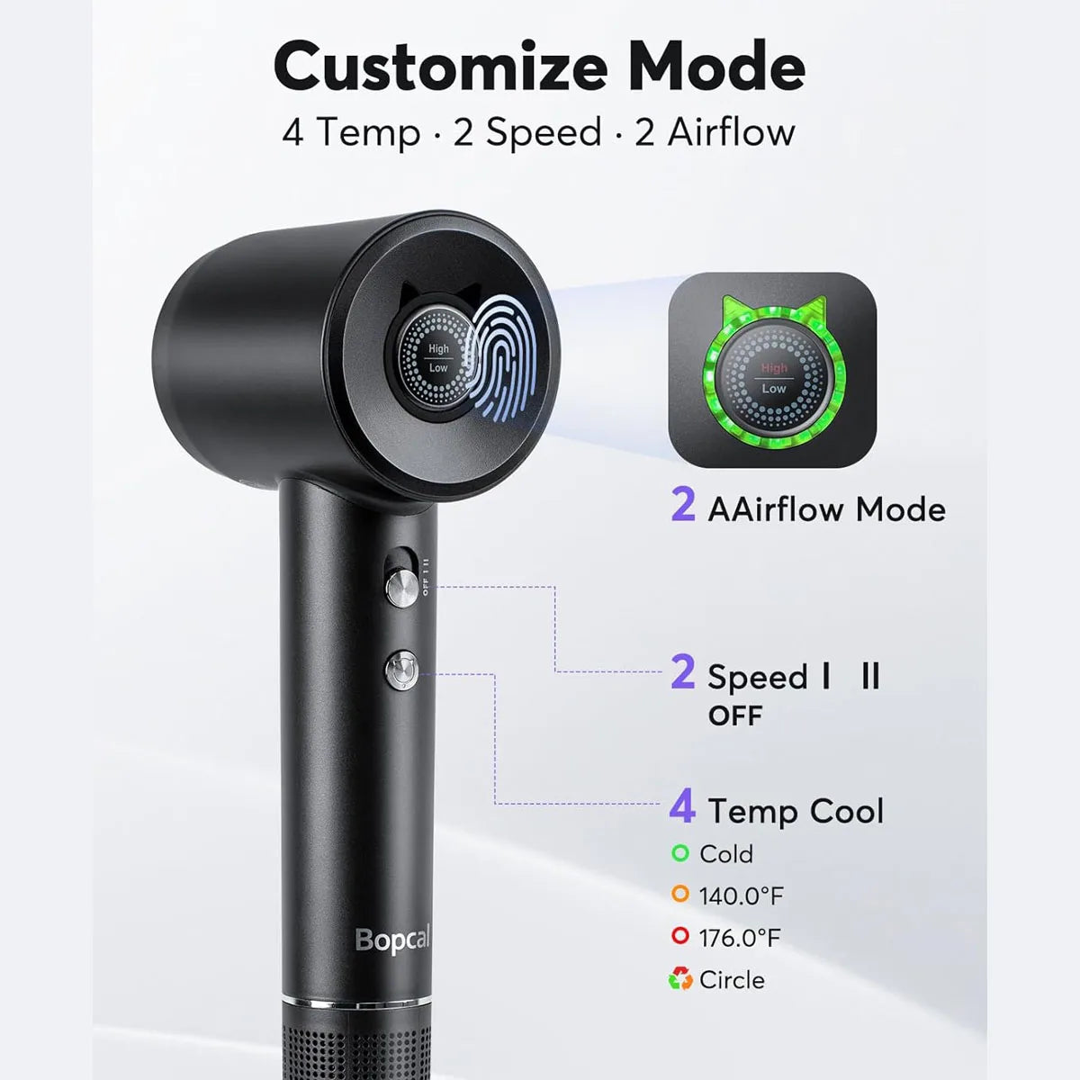 1. ๐๐๐๐๐๐๐๐๐ ๐๐ข๐ ๐ก ๐๐ฉ๐๐๐ ๐๐จ๐ซ ๐๐ ๐ ๐๐ฌ๐ญ๐๐ซ ๐๐ฅ๐จ๐ฐ๐๐ซ๐ฒ: Bopcal hair dryer is equipped with an efficient 110000RPM and advanced internal aerodynamics that ensure strong and steady airflow. Coupled with the constant heat, it drastically cuts blowdry time by increasing wind speed removes surface moisture from hair . Faster drying equates to time-saving and less damage to your hair.