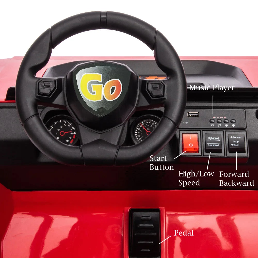 - Powerful 12V motor with four wheels delivers a smooth, kid-friendly ride on driveways, lawns, and sidewalks, offering responsive acceleration, steady braking, and confident cruising.