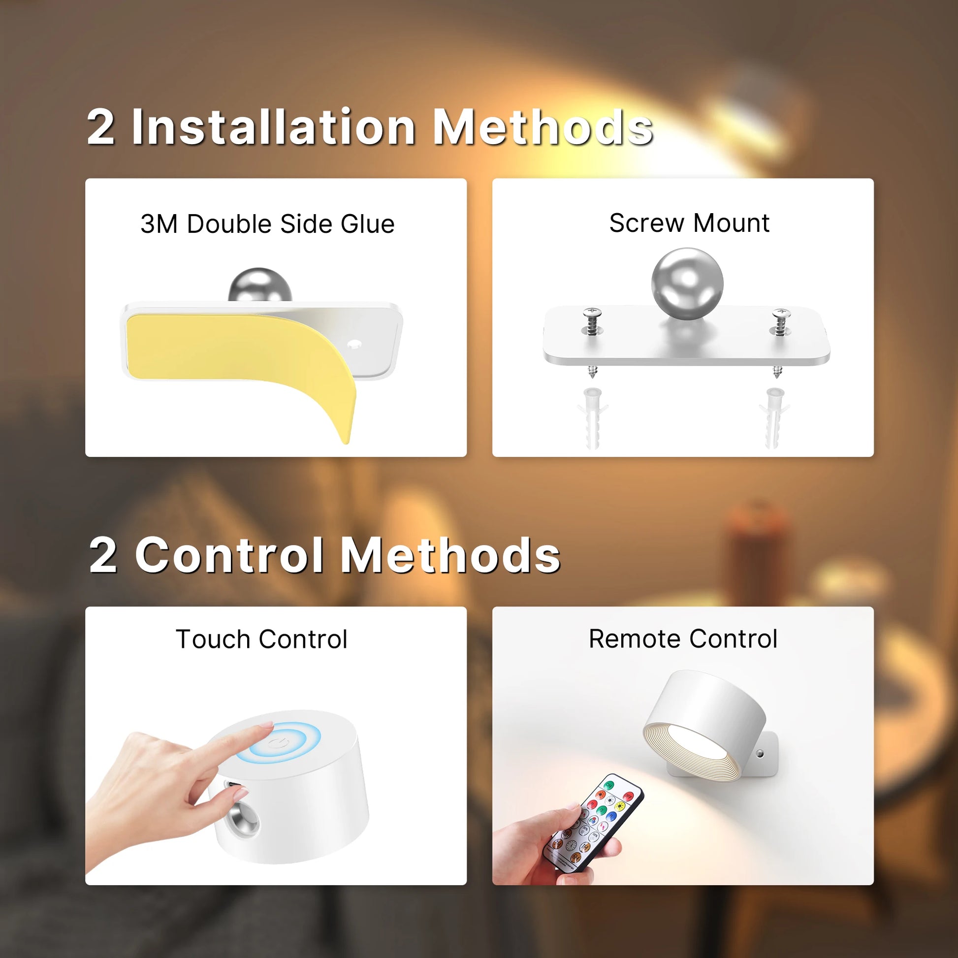 Aiopp RGB Ambience Dimmable Cordless Wall Lamp With Remote