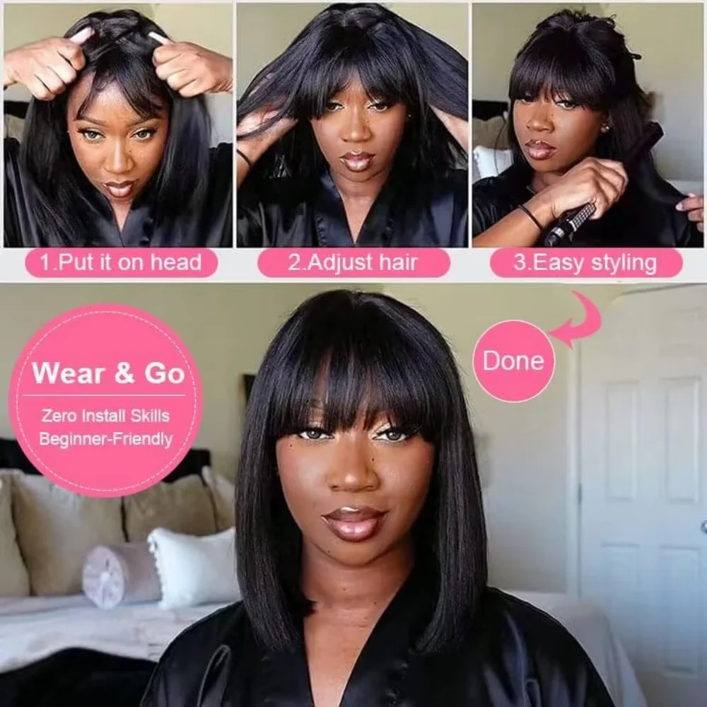 Rosslyn Bob Wig Human Hair Straight Wigs Full Machine Wig Black Wig 1b Bleached Knoted Short Human Hair Wigs Brazilian Original