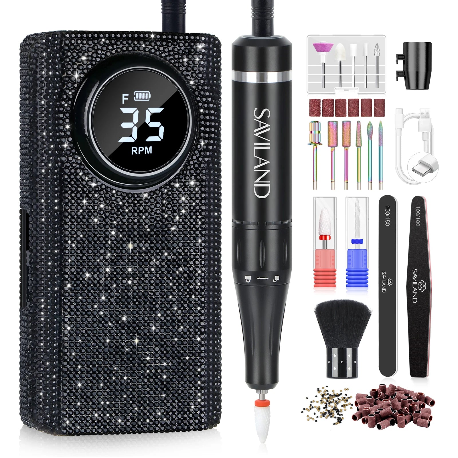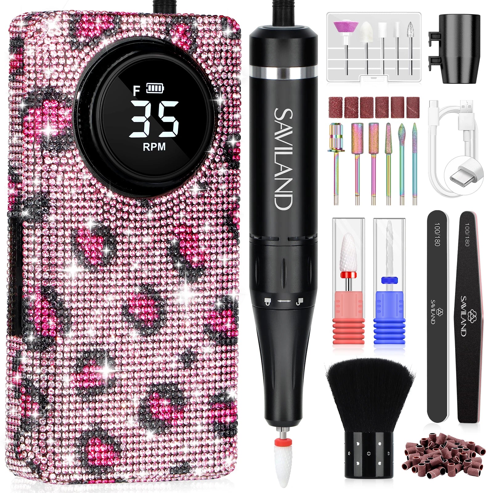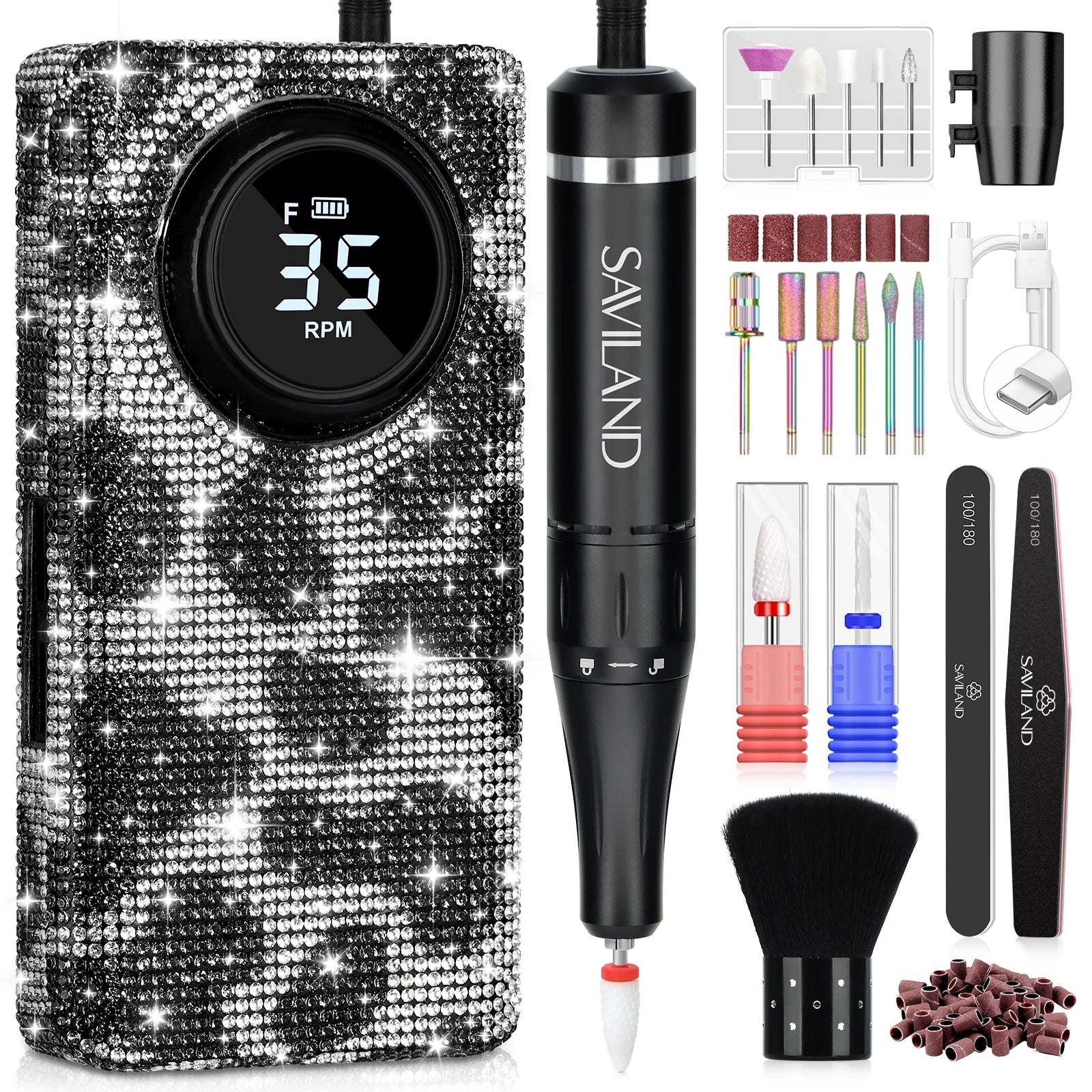 SAVILAND 35000RPM Electric Nail Drill Machine Kit Professional Drill Bits Drill Nail File Buffer Dust Brush Nail Care Tools