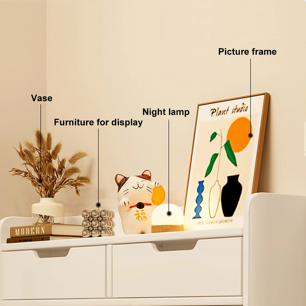 - Compact, space-saving design measures 19.69" x 6.69" x 32.68" with two dual-layer flip-out drawers and a top platform for keys, wallets, and accessories.