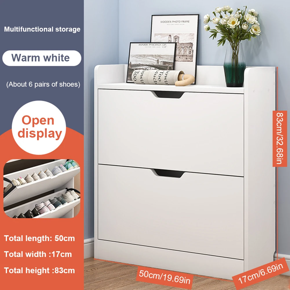 | 2-Tier Wooden Entrance Shoe Cabinet with Flip Drawers Shoe Organizer Cabinet Narrow Shoe Storage Cabinet for Bedroom Living Room Specification: Origin: Mainland China Size: 500.00x170.00x830.00mm/19.69x6.69x32.68inch Appearance Style: Modern Installation Method: Assembly Material: Wooden Note: 1*Entrance Shoe Cabinet |