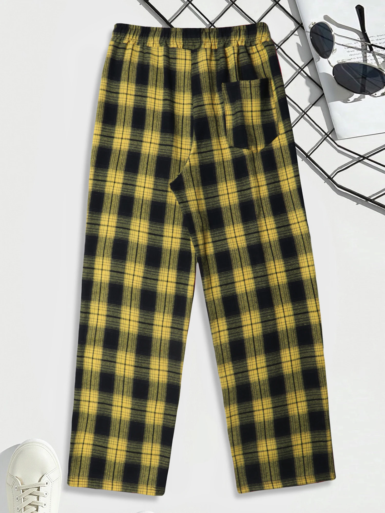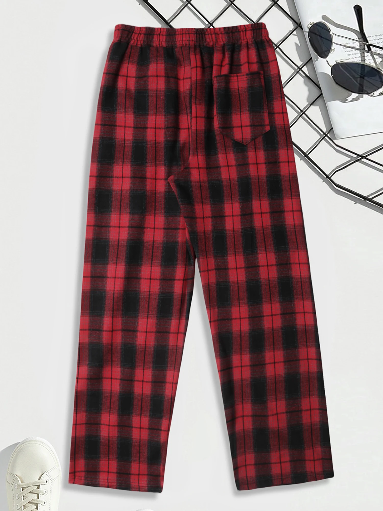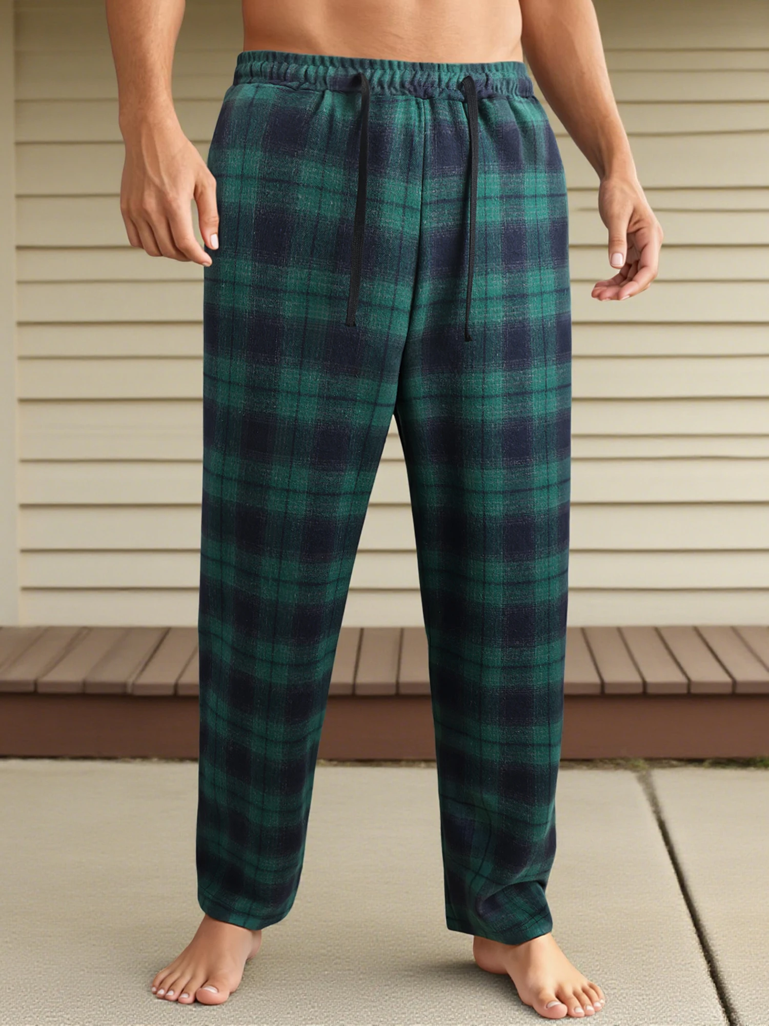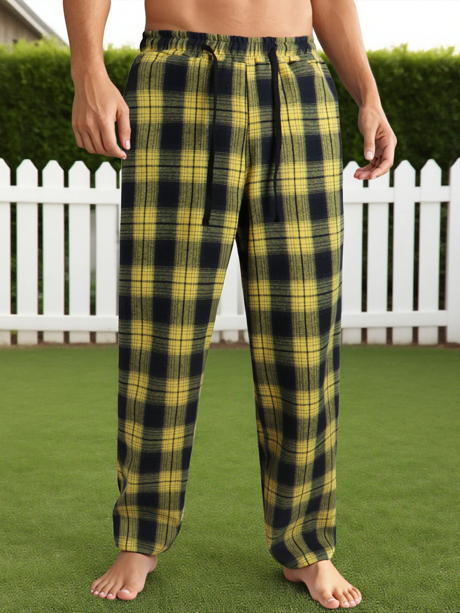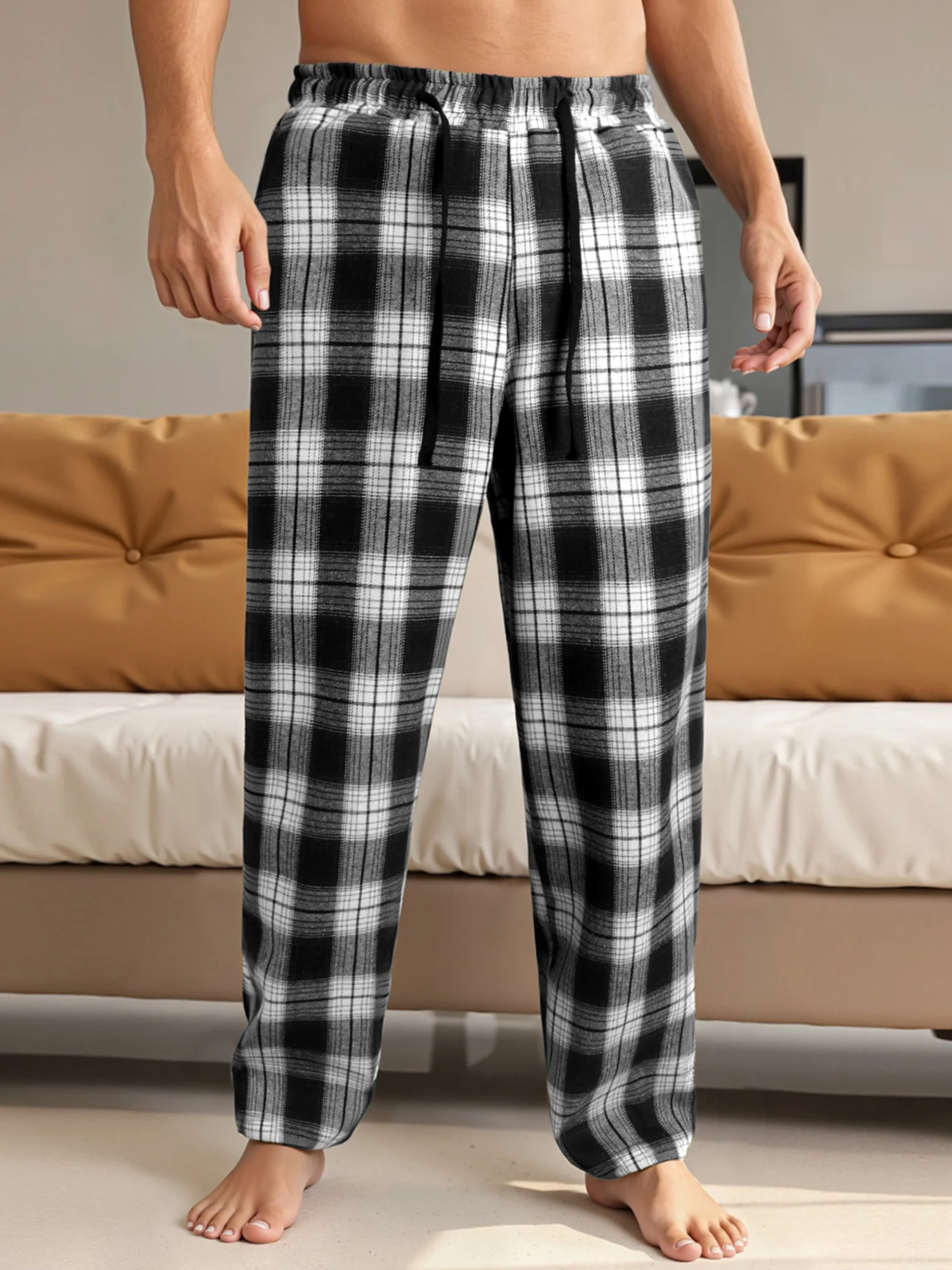 Men's Plaid Pajama Pants Fashionable Casual Drawstring Lounge Pants for Daily LifeSize (cm)