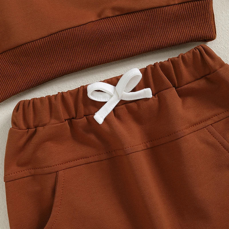 - Charming pumpkin print: coffee-colored, long-sleeve pullover top with elastic-waist pants for easy dressing and secure, comfy wear.